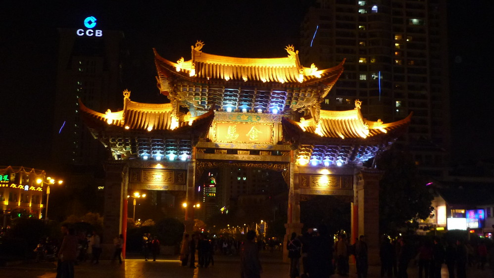 晚上逛了金马碧鸡坊和三市街。牌坊弄得很漂亮,金马碧鸡坊旁边有条卖民族小饰品的街,东西挺便宜的,只不过不是很热闹。