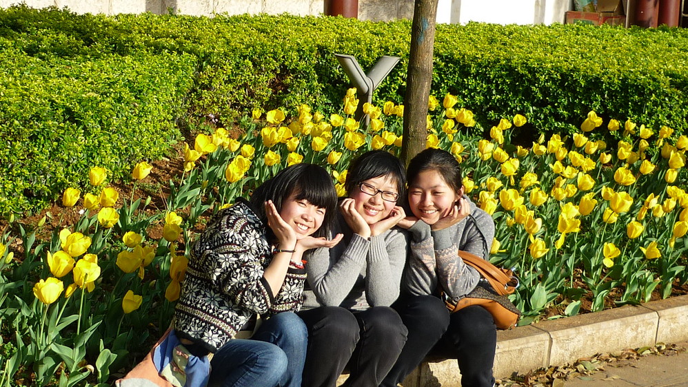 看到花我们又激动了,三个女孩,花一样的年纪。