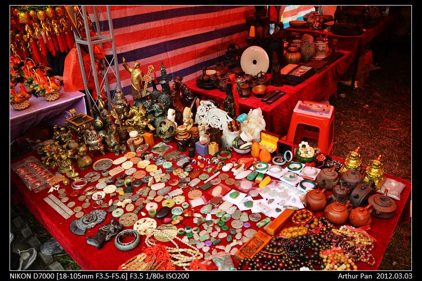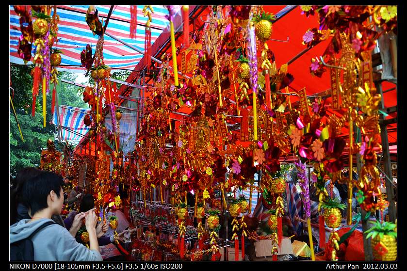 各种祈福的小东东挂满了各个摊位,看起来非常喜气,前面那张人海图人们拿的就是这些东东。