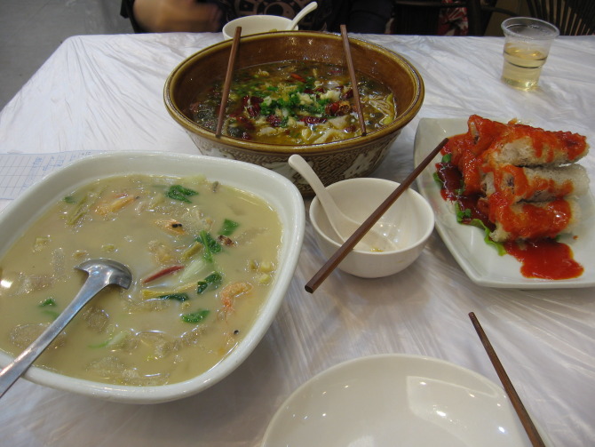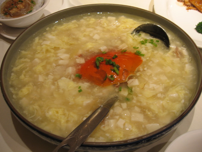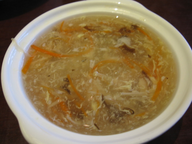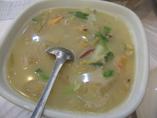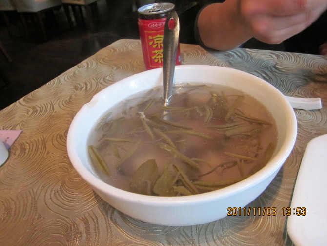 有名的西湖莼菜汤,莼菜据说是西湖特有的一种水草,吃起来滑滑的,不过味道还可以