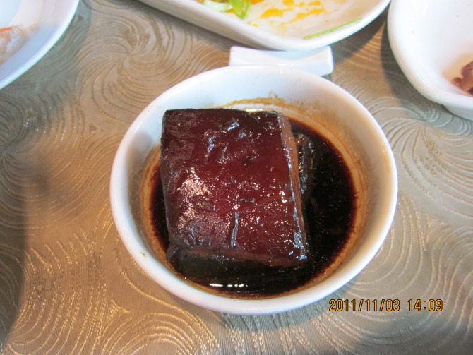 这客东坡肉是专门为我点滴,唉,拼着再长肥肉也得试试杭州 的名菜啊