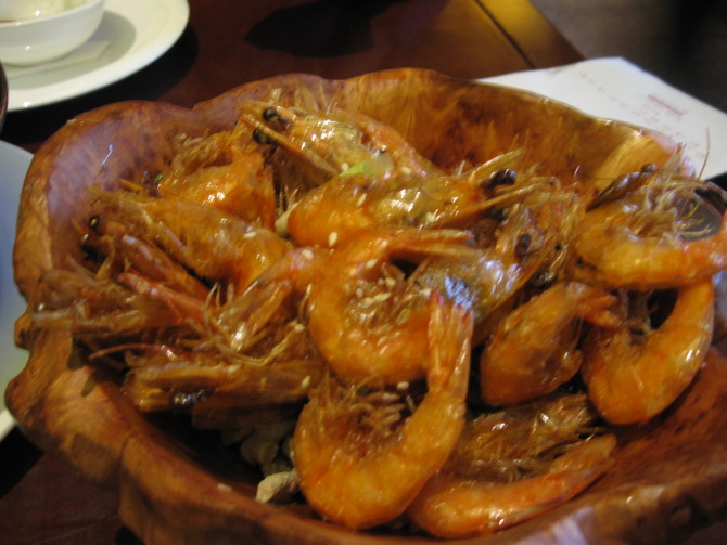 直到从30日晚宋城回来才吃了在杭州 的第一顿正餐。晚上八点,走到外婆家,一问,居然还要等九桌,拿号走人,去新白鹿湖滨店。新白鹿也是杭州 家喻户晓的一家了,新派杭帮菜,而且价廉物美。