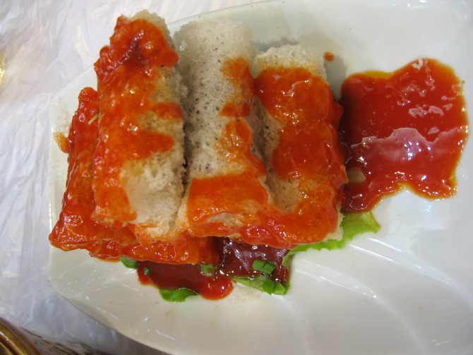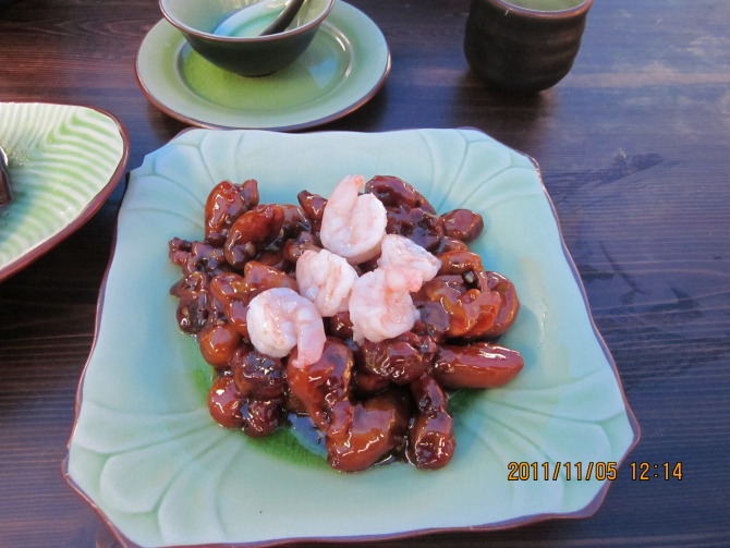 珊瑚虾,下面铺的是真的珊瑚啊,但是味道只能说过得去,因为没尝过珊瑚的味道