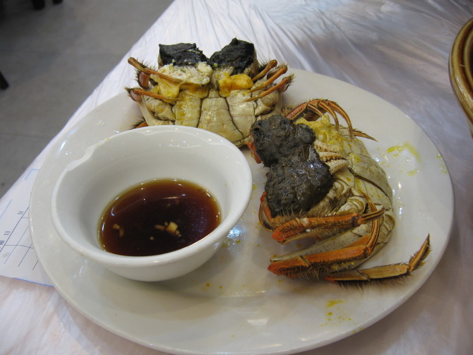 这个厉害了,叫豆腐蟹。本来是点了两道蟹的,一道梭子蟹炒年糕,另一道就是豆腐蟹。来了这里突然变得灰常喜欢吃螃蟹啊!可惜下单后被告知梭子蟹卖光了,问需不需要用青蟹做。后来就用青蟹做了,满满一大盆啊!幸好没有点两份蟹