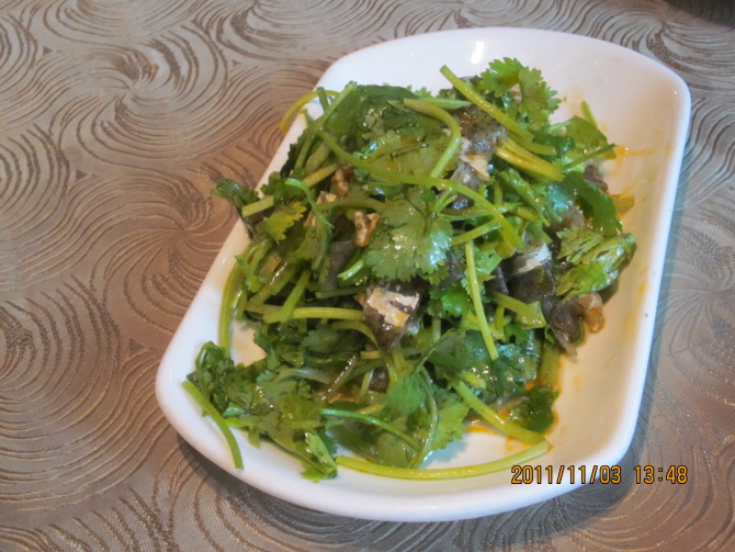 凉拌鱼皮,更喜欢上面的香菜,哈哈,因为这几天大鱼大肉吃多了