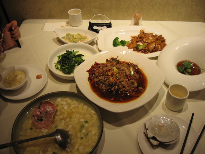 这大大盆的就是传说中的西湖牛肉羹,里边有牛肉末、莼菜等。突然发现杭州 菜馆的特色,就是菜都是好大一盆,尤其是汤羹类,简直是用脸盆来装滴