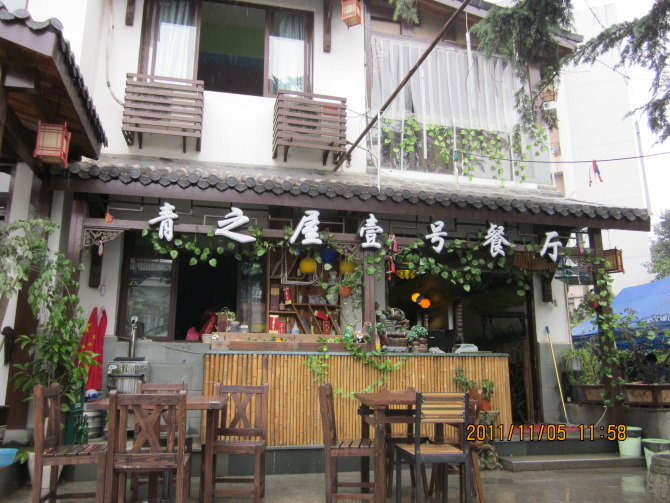 下面介绍此行杭州 的最后一餐,在浙大玉泉校区旁边的青芝坞吃的。青芝坞是个地名,那家餐厅叫青之屋一号,是杭州 一个蜂友推荐滴,挺有小资格调的,味道嘛其实比不上白鹿,价格却也不便宜。
