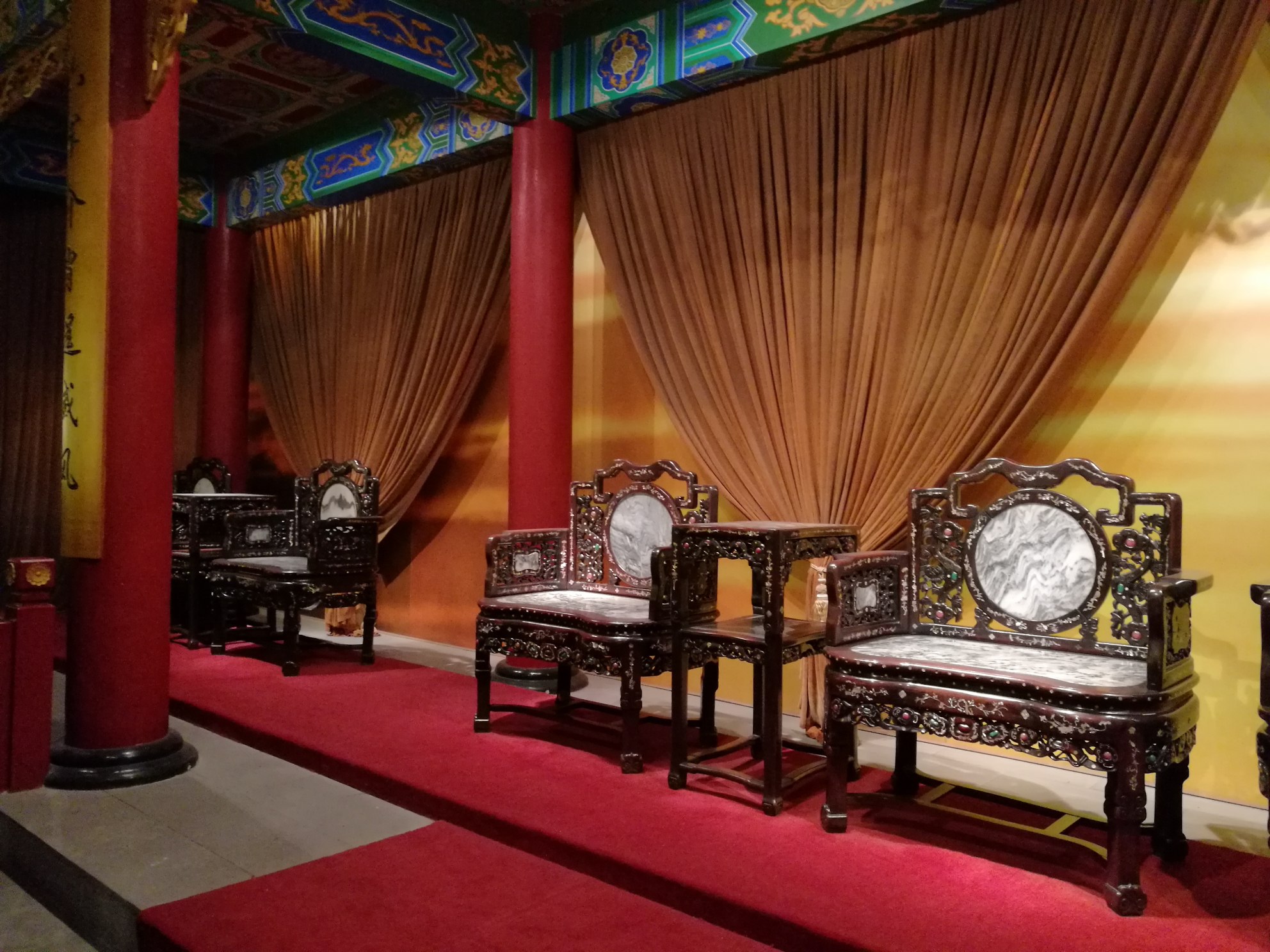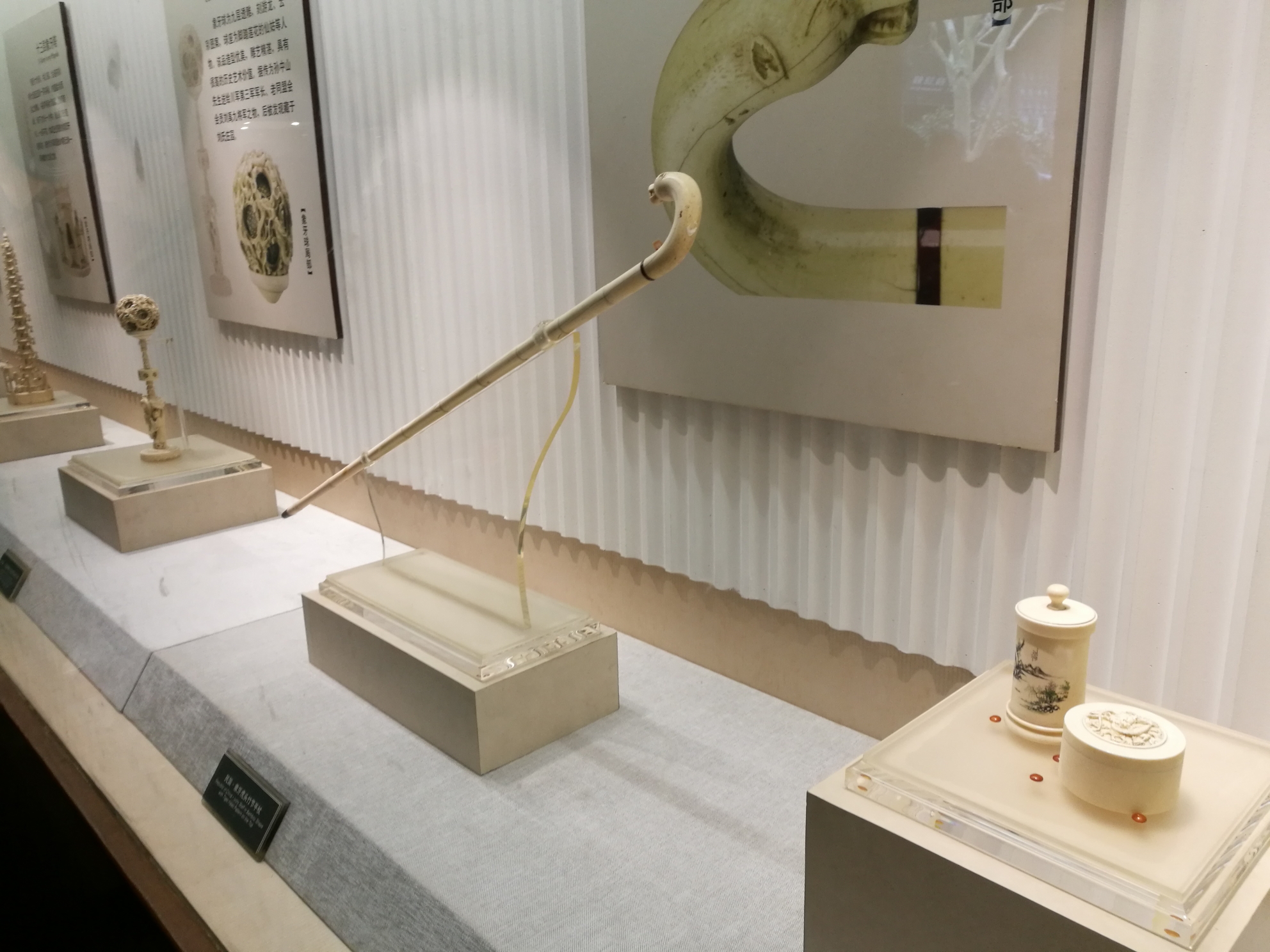 领到票已经下午3点多了,有人不停拿大喇叭宣传5点就要闭馆,抓紧时间进到刘氏庄园博物馆。大门是以前那种牌坊样式,进门就是一个展厅,参观了刘文彩收藏的象牙制品,令人叹为观止。