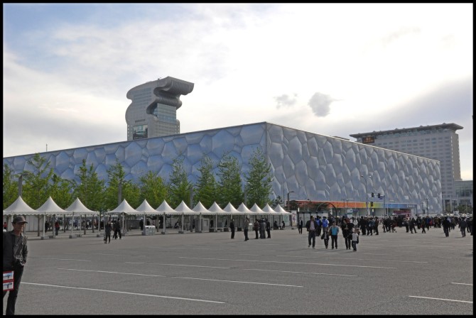 不敢从旁门走出,怕找不到路,原路返回,从东门出,好累~继续坐地铁5号线到惠新西街南口换乘10号线到北土城,再换乘8号线到奥林匹克公园,看鸟巢和水立方。其实这里应该是晚上来的,会很美,但到这里的时候才下午三四点钟,等亮灯的话,要好久,而且第一天,对周围环境不了解,也不敢太晚回去。在外面走了一圈,网上说,里面也就是些椅子,没什么可看的,我就很听话的没有买票进去~在广场,有人兜销福娃的手机链,多嘴问了价格,10元,鬼使神差的掏钱买了一套,然后看到有小的,就说想换小的,小的5块钱,我说我要一套,小贩愣是不找钱,说要不给你三套吧~随后又塞给我两套。傻了巴叽的我拿着这三套手机链,哭笑不得,回来愣是没好意思拿出来~