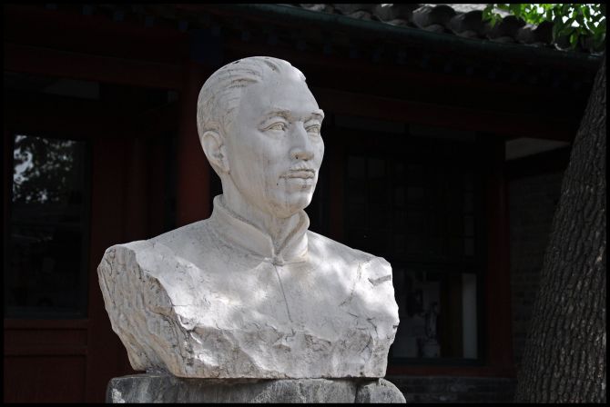 进了院子,是个四合院,院当中是茅盾的半身雕像,卧房、起居室、书房并未完全开放。摆设了一些展品,估计是茅盾生前在这里用过的东西。