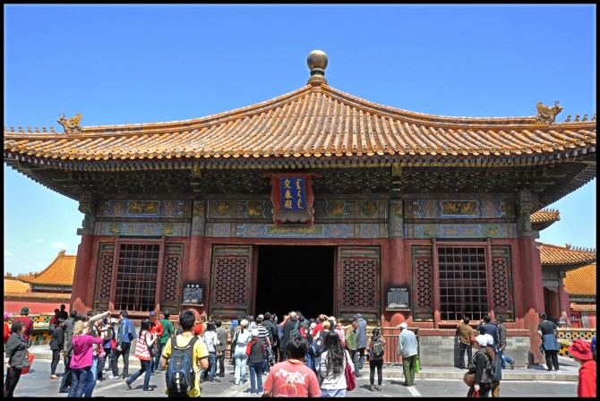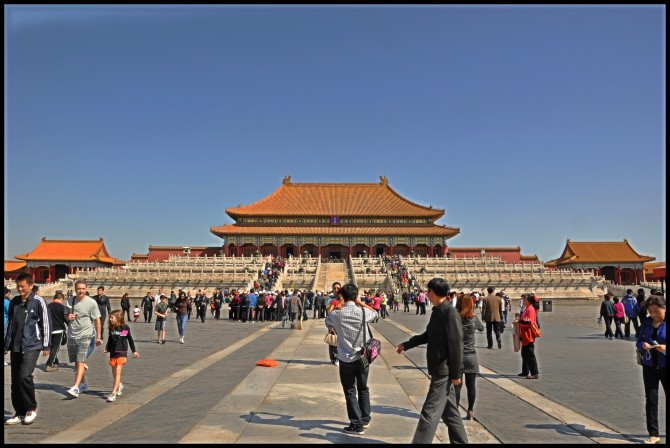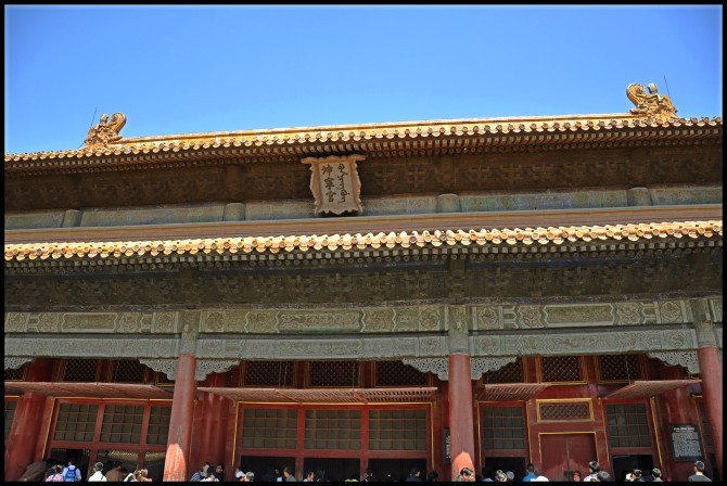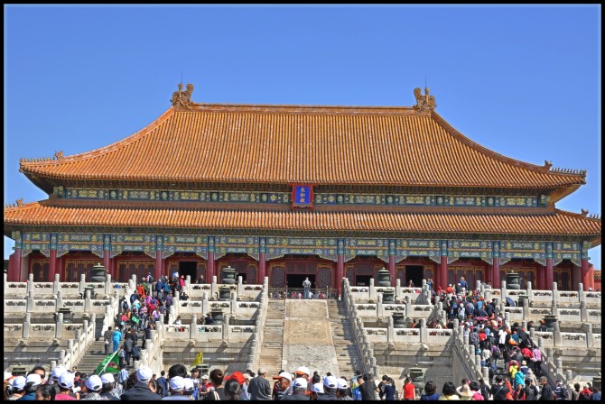 去故宫,门票60元。租台电子解说器。按中路行至保和殿时,突遇外事活动,保和殿以西全部封闭,所有游人都被赶至东面,于是只能在东面游荡,好多宫还没有开~郁闷~至中午十一点多,外事活动结束,日精门打开,于是延着乾清宫继续向北,至神武门出,已经下午1点。
