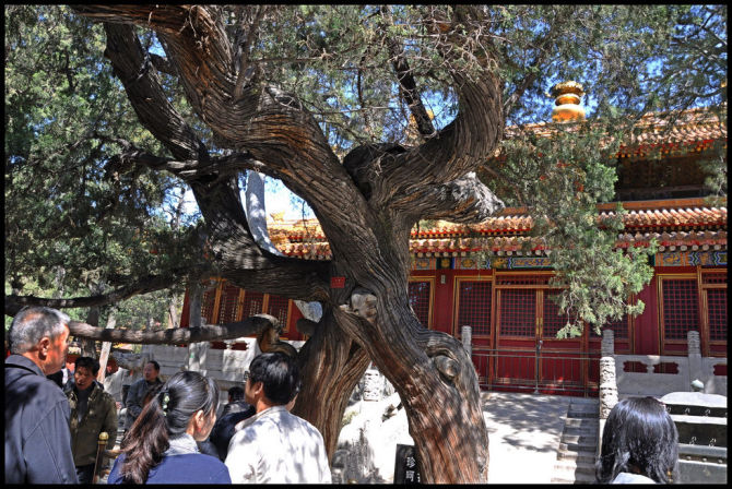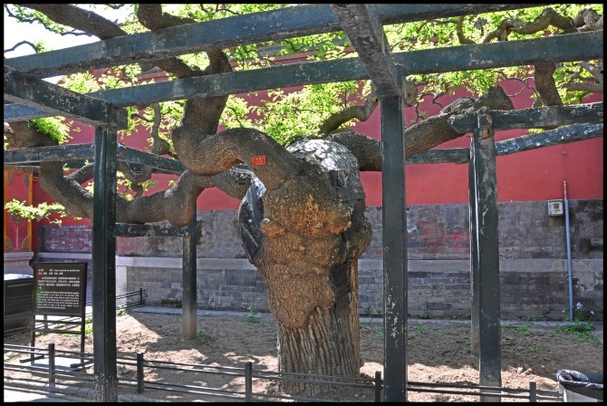 站在树前,正沉思,忽听一导游跟游人讲解,说当年崇祯自缢的那棵树,已经候死掉了,现在看到的这棵只是别处移植过来的,顿时兴致索然~~