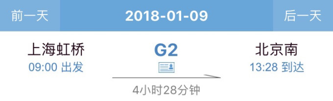 那么如果你去旅游的话,我建议你选择早上9:00始发于上海虹桥终到于北京南站的G2。