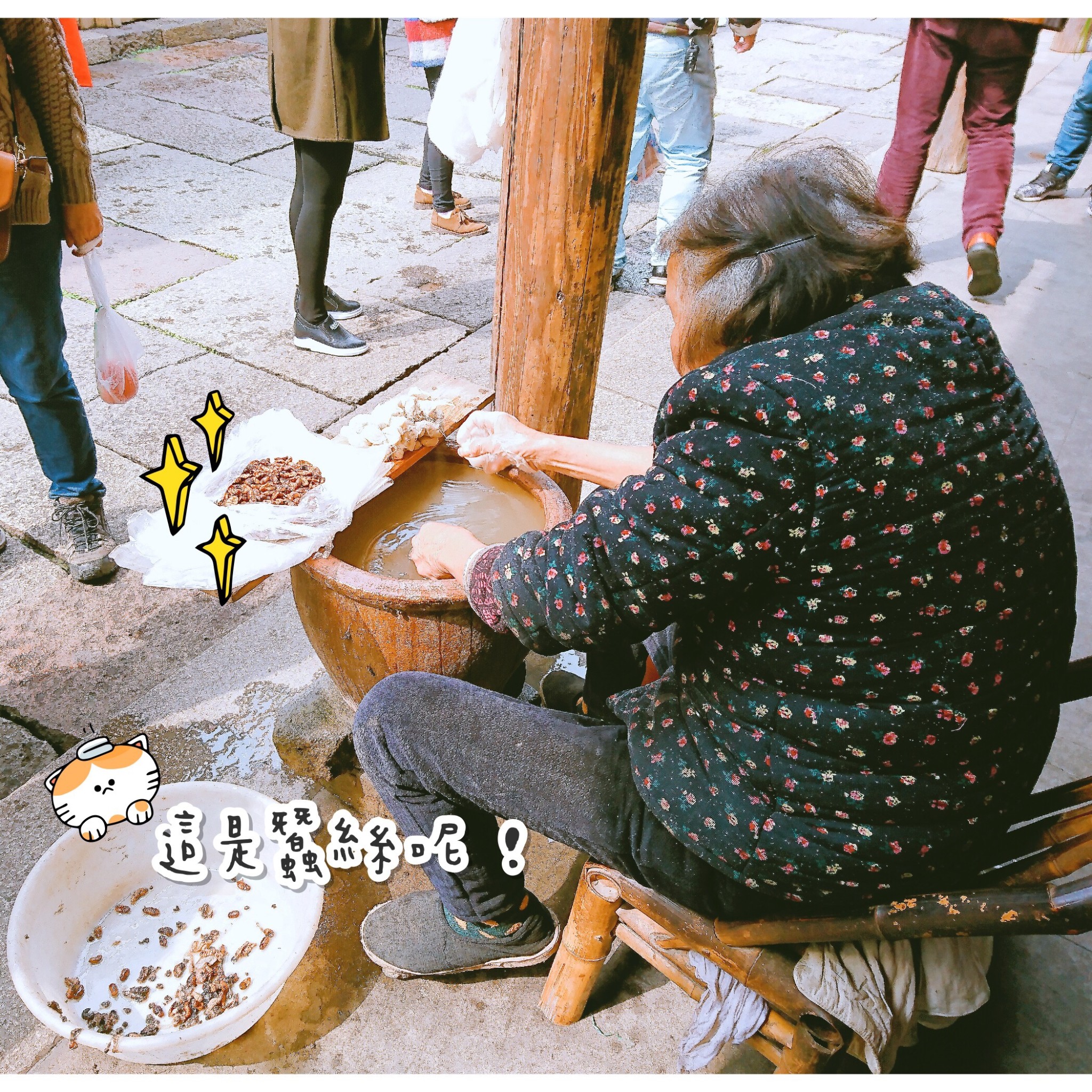 在东栅可以看到不少卖蚕丝相关产品的店家,老奶奶就在门口熟练的操作着,他们大多听不懂普通话,但会给游人腼腆的笑容^^ (下面这张照片我很喜欢↓)