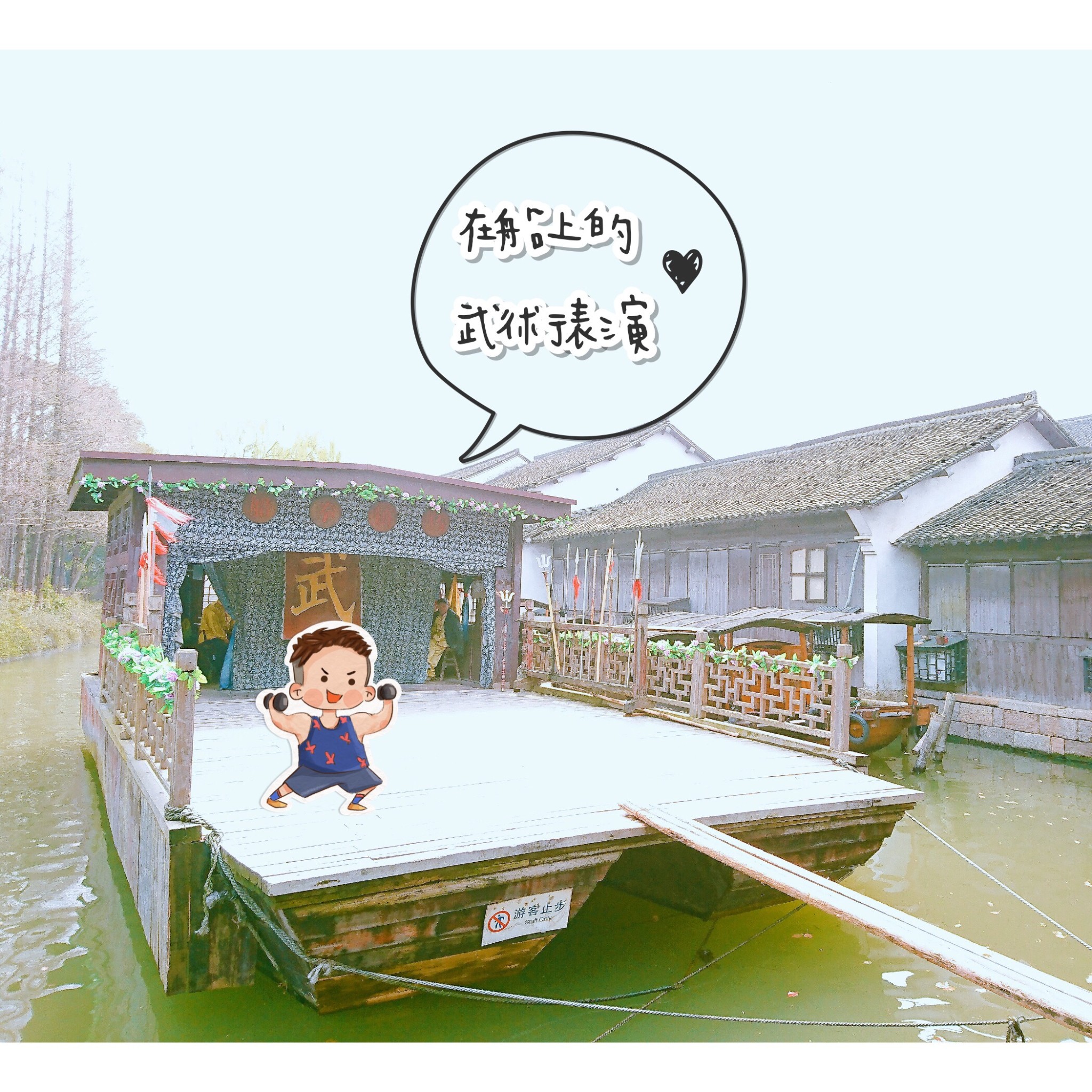 去的时候很幸运,赶上了一场武术表演!武师多半是上了年纪的长者,在船上武刀弄剑,虽然有些吃力,但观众却非常捧场,快五分钟的表演,全程我们是喝采不断,「好好好」的为民俗技艺叫嚷着。
