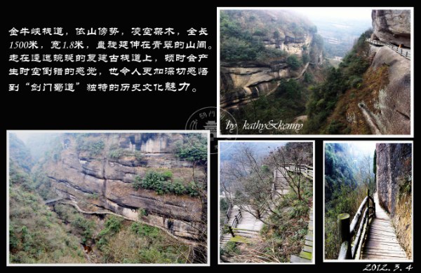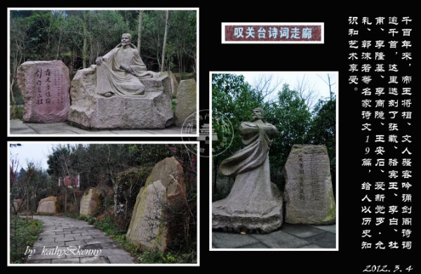 小结一下,剑门关(/poi/1392109.html)是个有故事的地方,值得周末或者小长假去看看。景区挺大的,如果全部步行走完的话大概要5小时,因为有些地方是单边步行风景不是环线,这也是景区聪明的地方,让你为了不走回头路就消费他的高空滑索和索道。在成都周边旅游爆满的时候,这里相对是很清静的了,可以尽情呼吸新鲜空气,品三国文化。从高速下到景区很近,路很好走,相比去峨眉山虽然高速的路途短一些,但是峨眉山进山门后还要开1个多小时的车,我感觉到这里的路也不算远了(因为以前基本每月都会去爬峨眉)。 关于吃的方面,豆腐(/poi/6756199.html)就是当地的特色菜,景区外沿路都是农家楼,每家的味道差别不大,不用特意追求,豆腐(/poi/6756199.html)菜式很多任君选择,价格在20-40一份,分量比较足。
