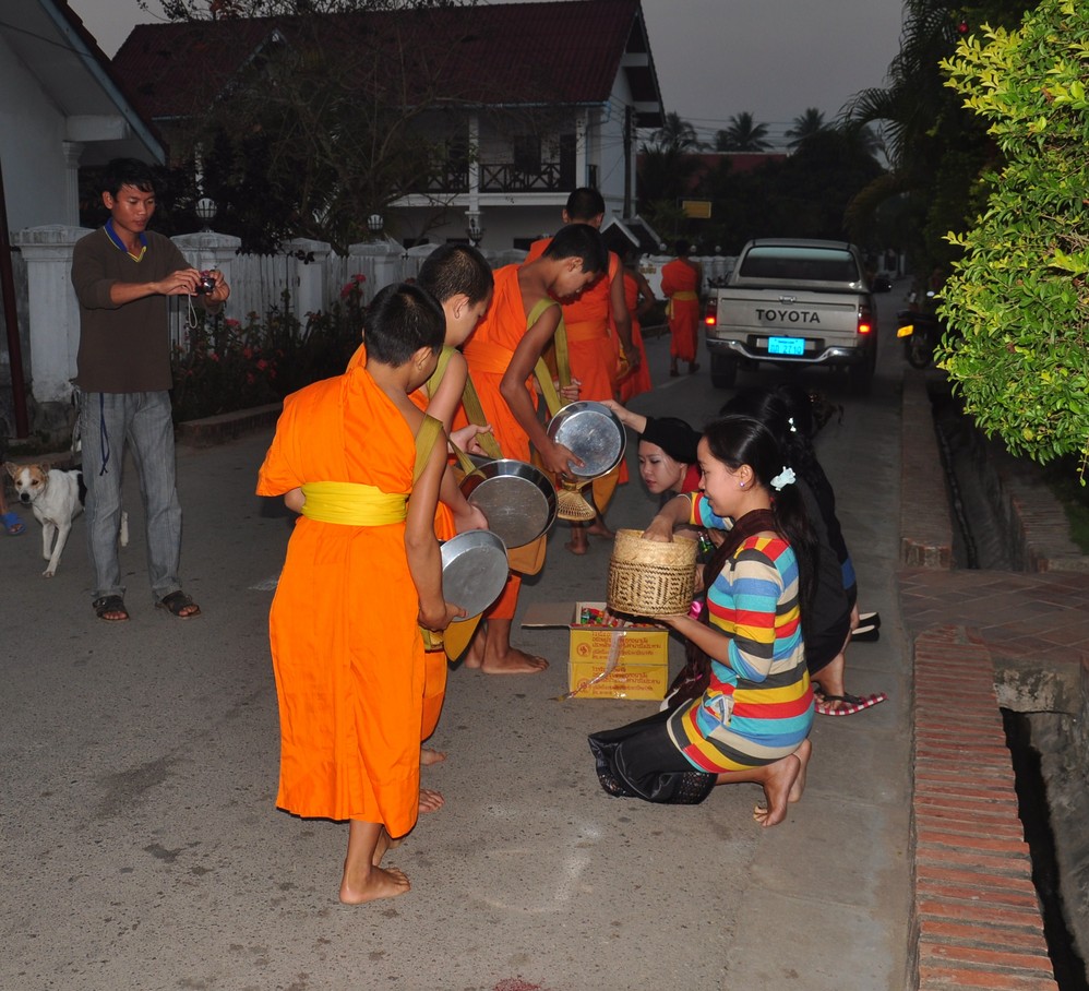 每天清晨居民给僧侣布施表达对佛祖或神灵尊敬,为老挝一景。