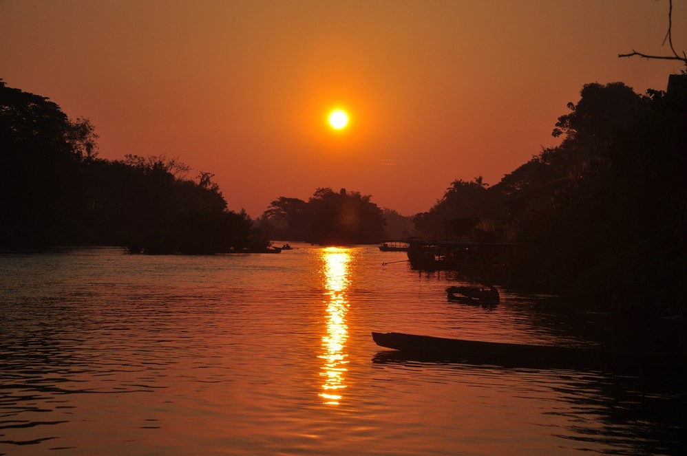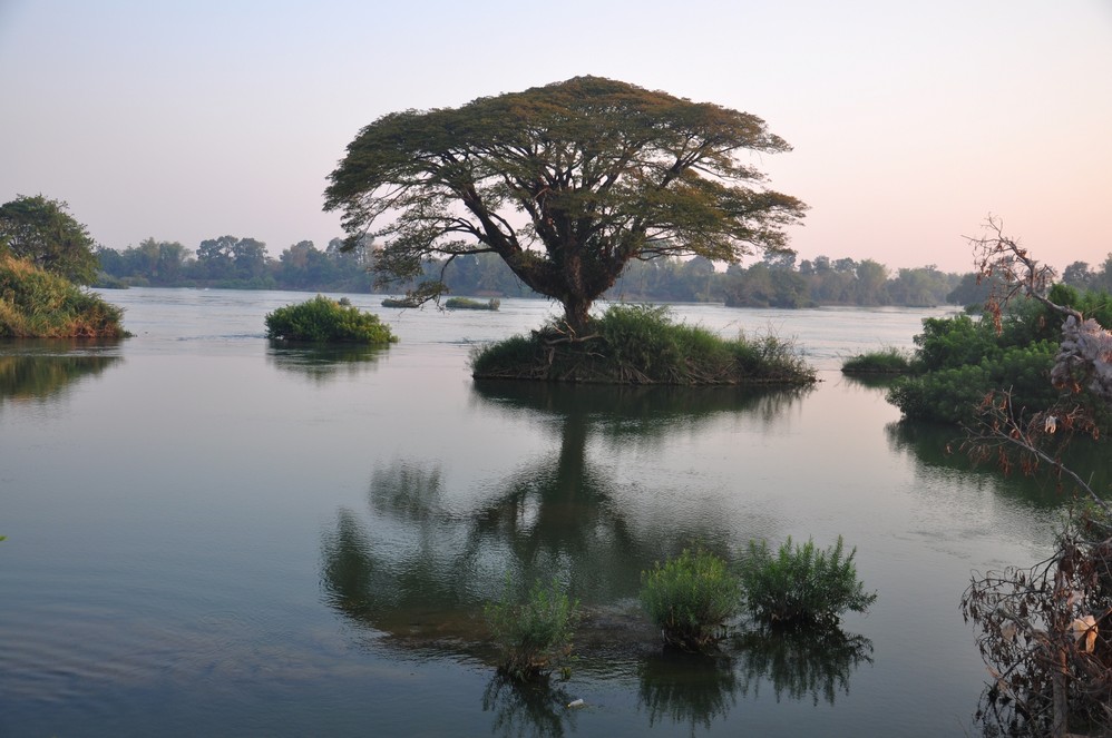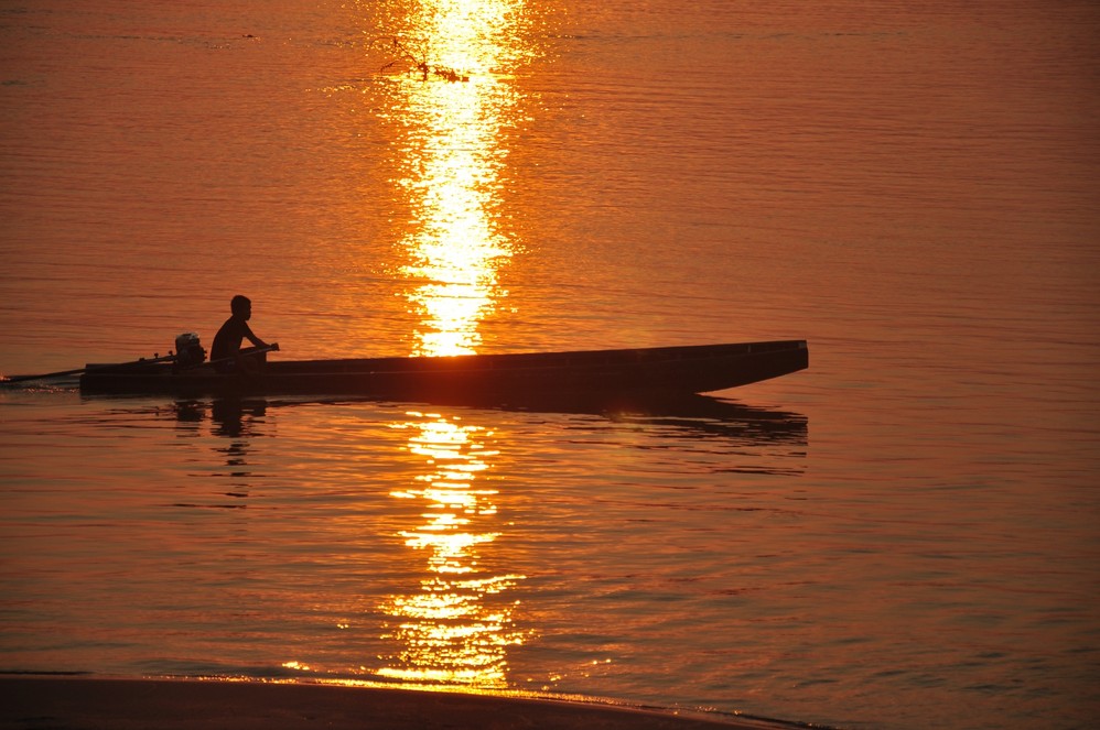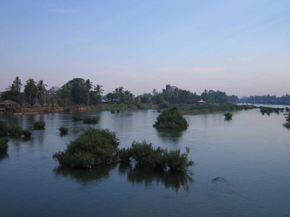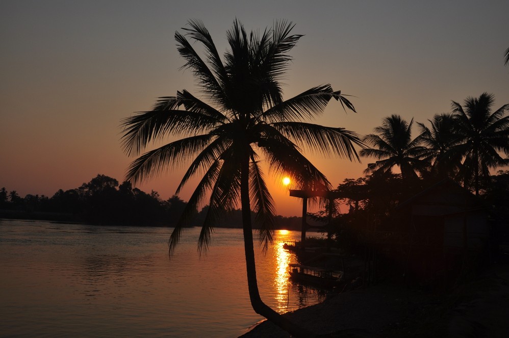 由于当地无污染,空气清新,蔚蓝的天空,碧绿的湄公河,散落着大小的沙洲,观赏日出和日落是极大的享受。