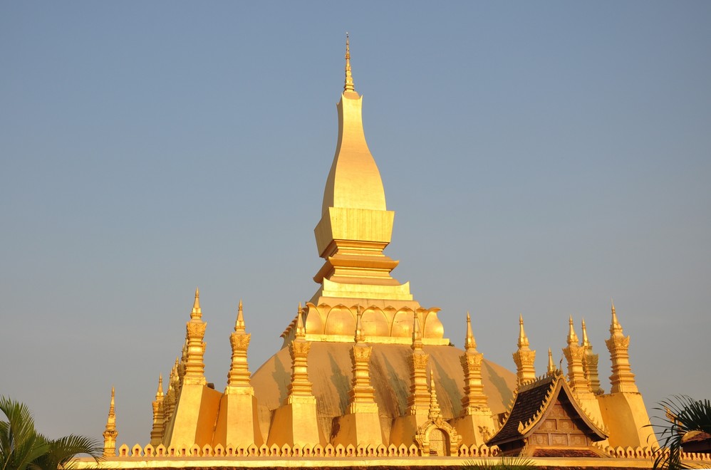 美丽金色的塔銮(/poi/5485503.html)寺(Pha That Luang,又名大佛塔)是佛教和老挝国家独立的共同象征,主塔形象还出现在国徽里。我们在傍晚时分去那里,欣赏金塔反射的落日余晖。