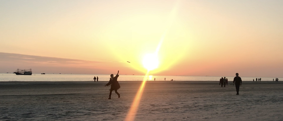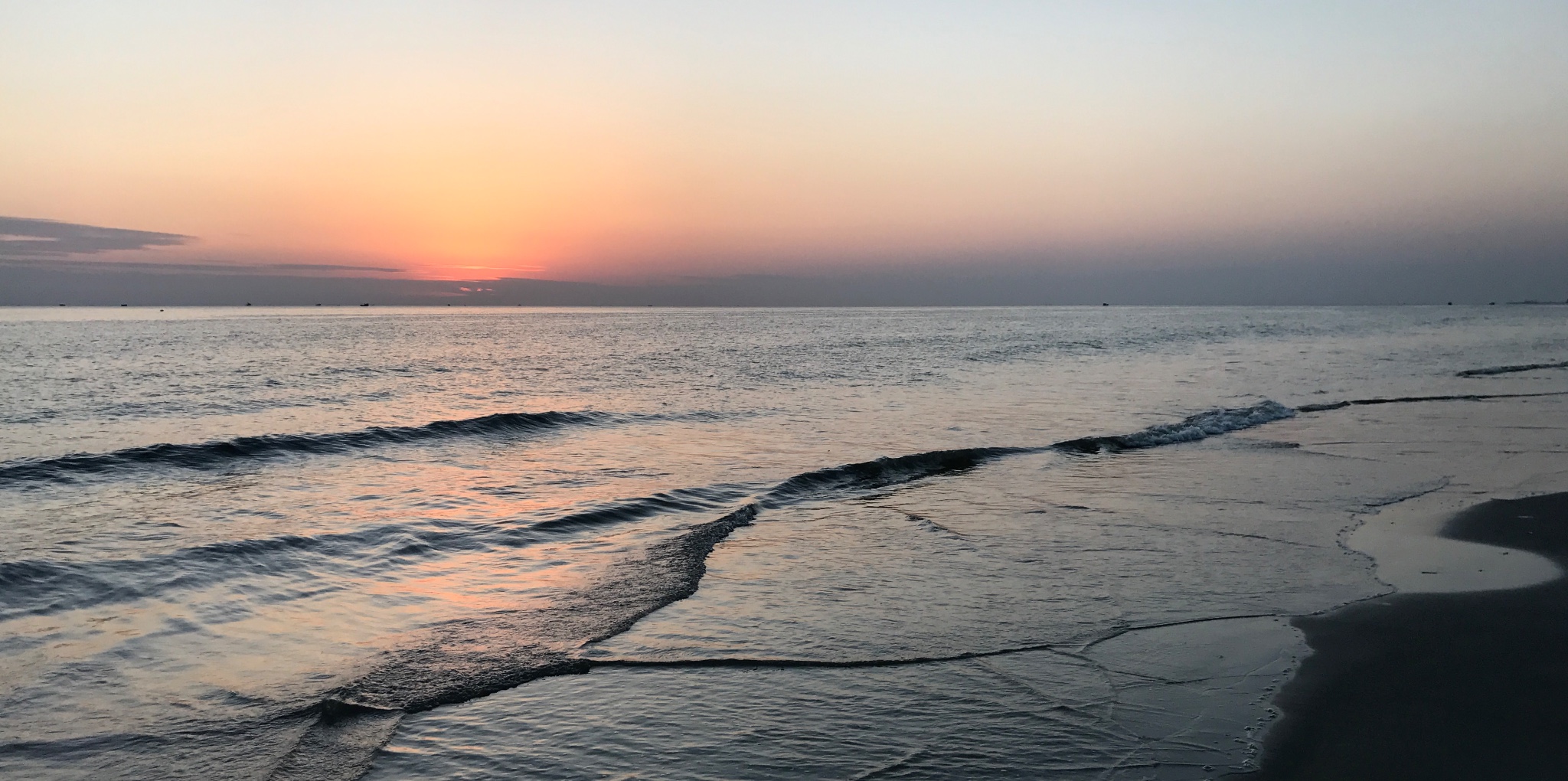 到落日的那一会儿,我们搬着板凳去坐到海水边,等着海水没过鞋子再离开。