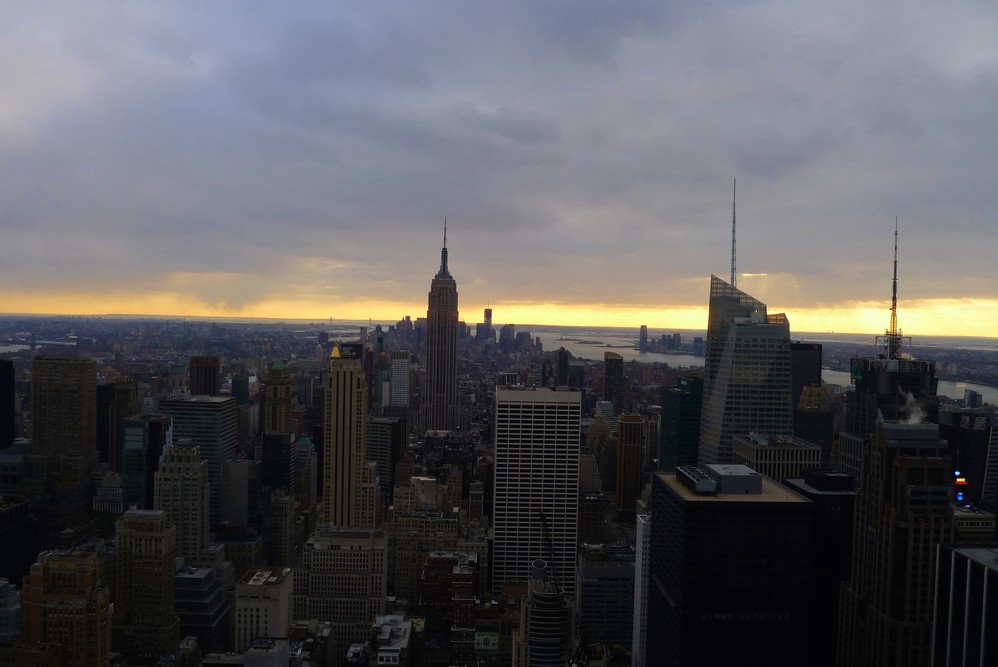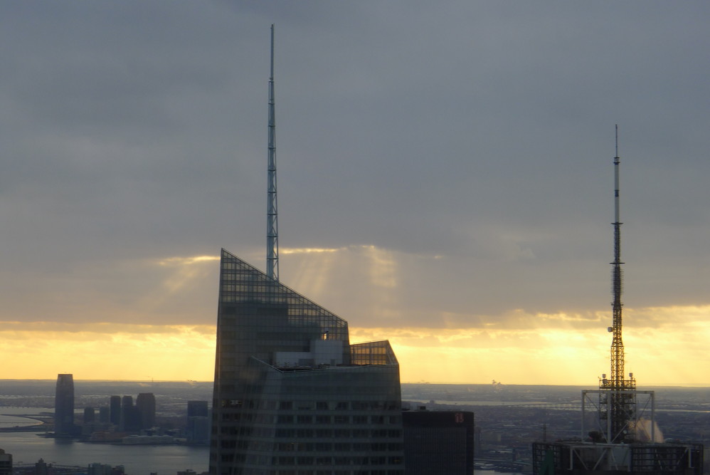 来到大城 市就会想登高。我没有试过Empire state building帝国大厦,因为排队就要排一个小时。这里是Top of the rock, 也是个观景的好去处。最好下午去,留到夕阳时分,看着天光泻下云层,然后夜幕降临,华灯初上,感觉很神奇。