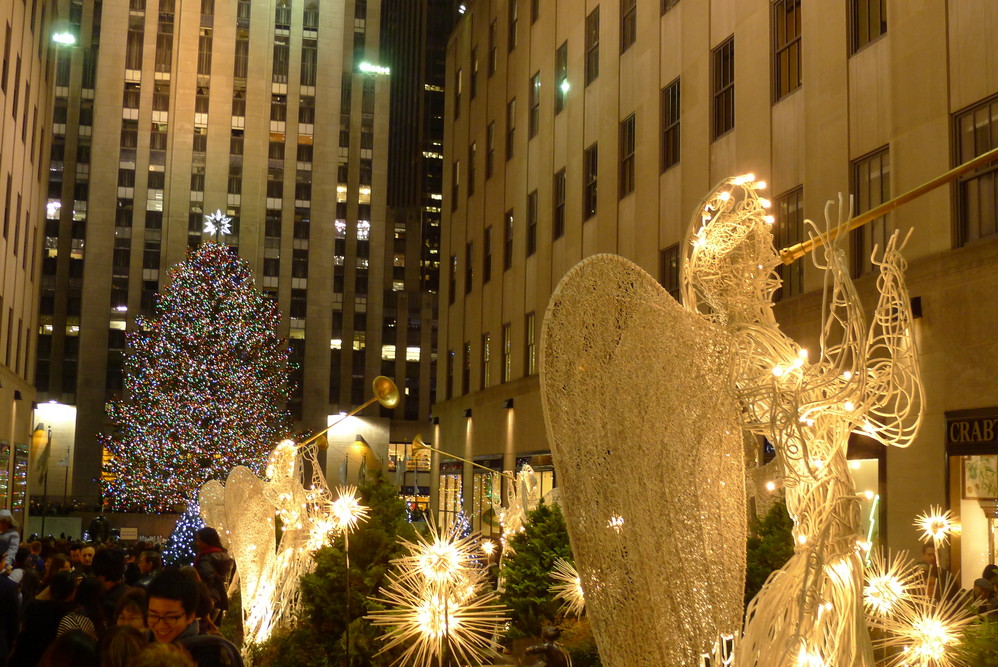 洛克 菲勒中心的灯饰很漂亮,不仅有巨大的圣诞树(今年的挺土的),还有很多小天使~