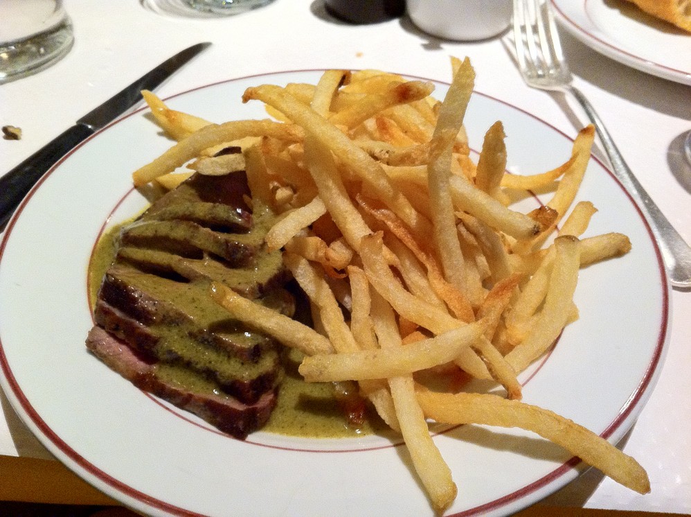 中城有家餐厅是以威尼斯 为主题的,没有菜单,或者说你就只有一种选择,那就是牛排加薯条。牛排的Secret sauce非常美味。餐厅的装饰也非常有特色。