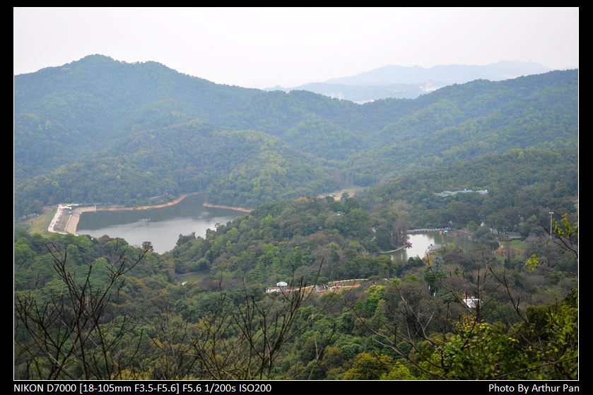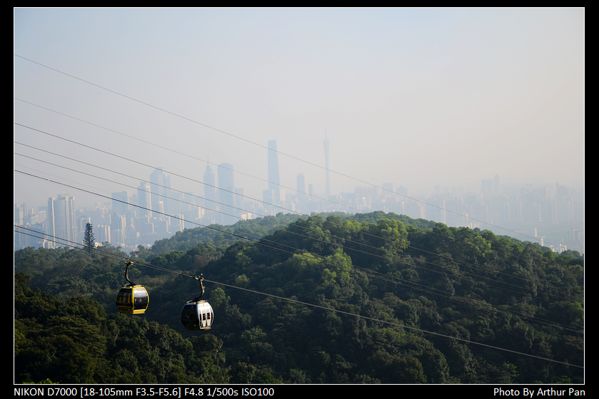 在山上能看到远处的小蛮腰,不过天气灰蒙蒙的也看不大清楚。