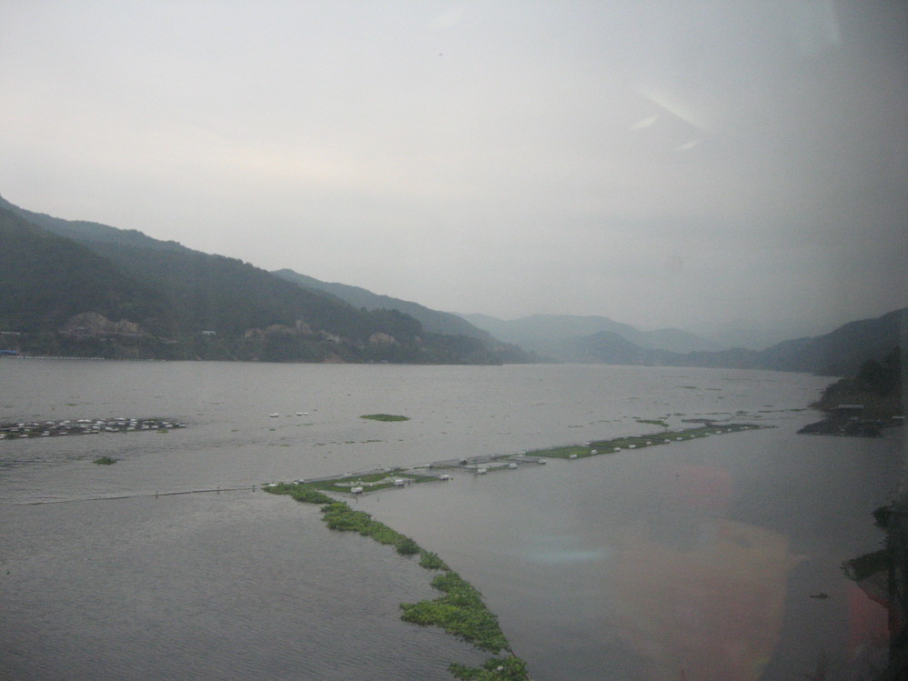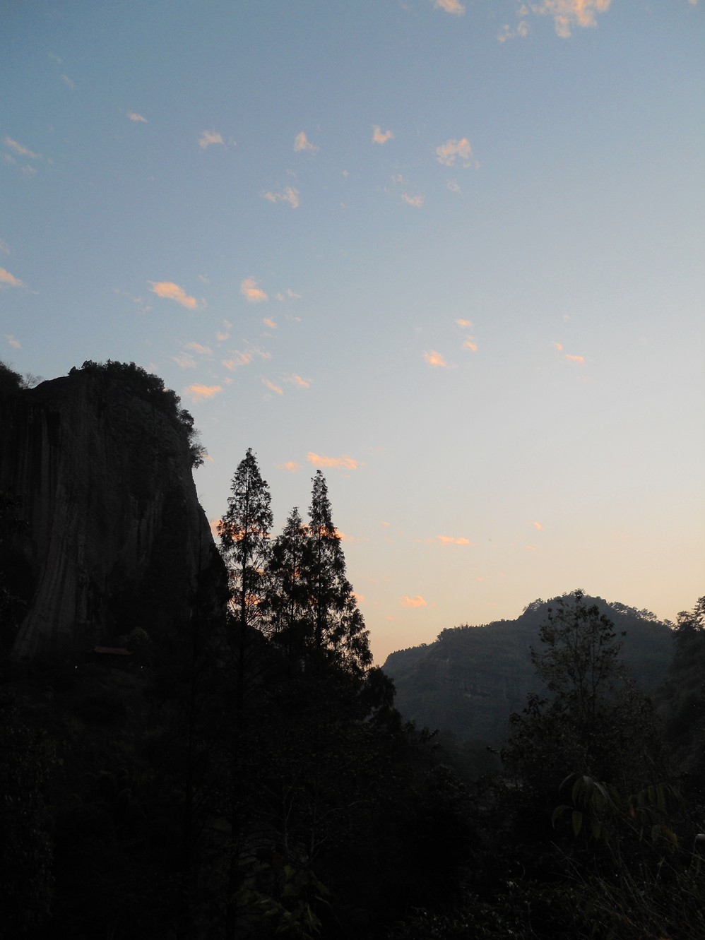 从厦门 到武夷山 的火车是绿皮车了,但是是软座,吼吼。这一路的景色让人颇感惊喜,让我立即有了度假的感觉,立马觉得即使坐绿皮车也值了。基本上火车一路上都是沿着江边行驶的,我猜应该是闽江吧!路旁不时有开满花的树闪过,江边的山丘也在高高低低的变幻着,江中的样子也不尽相同。这一路天渐渐黑了下来,有点小遗憾,不然恐怕我会一直睁着眼看到终点的。猪姐怎么都想不通,就是一条江嘛,怎么就那么喜欢看呢?我看的正起劲的时候,她已经去见周公了。