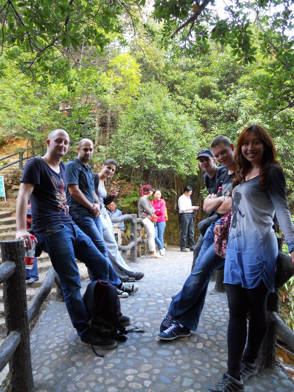 首先到青龙瀑布 ,这个稍远,龙川 比较近。到了以后司机师傅说路远山高的,还是坐景区的车上去吧,不然时间来不及,俺们就被忽悠的上车了,境外盆友们坚持的要步行接近自然,于是俺们就分开完了。10元一个人把我们拉到山顶。其实所谓山顶就是一个类似半山坡的位置,从那里的路开始往下往回走。其实这里的山并不高,也不陡,景区也没有向山上修,整体只是一个小缓坡,其实是沿着山谷中的河流走向修的,其中包括两个瀑布。只是线路比较长而已,并不累。说实话瀑布也不大,也没有太多的景点,和北京 的怀柔 山区也差不多,只是水多些清些,所以,坐车上来也成,反正没太多玩味的东东,你懂的~