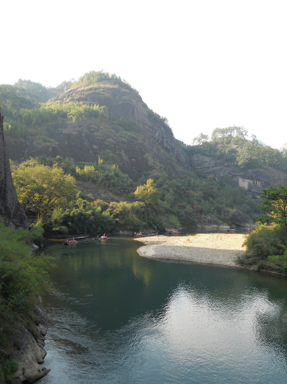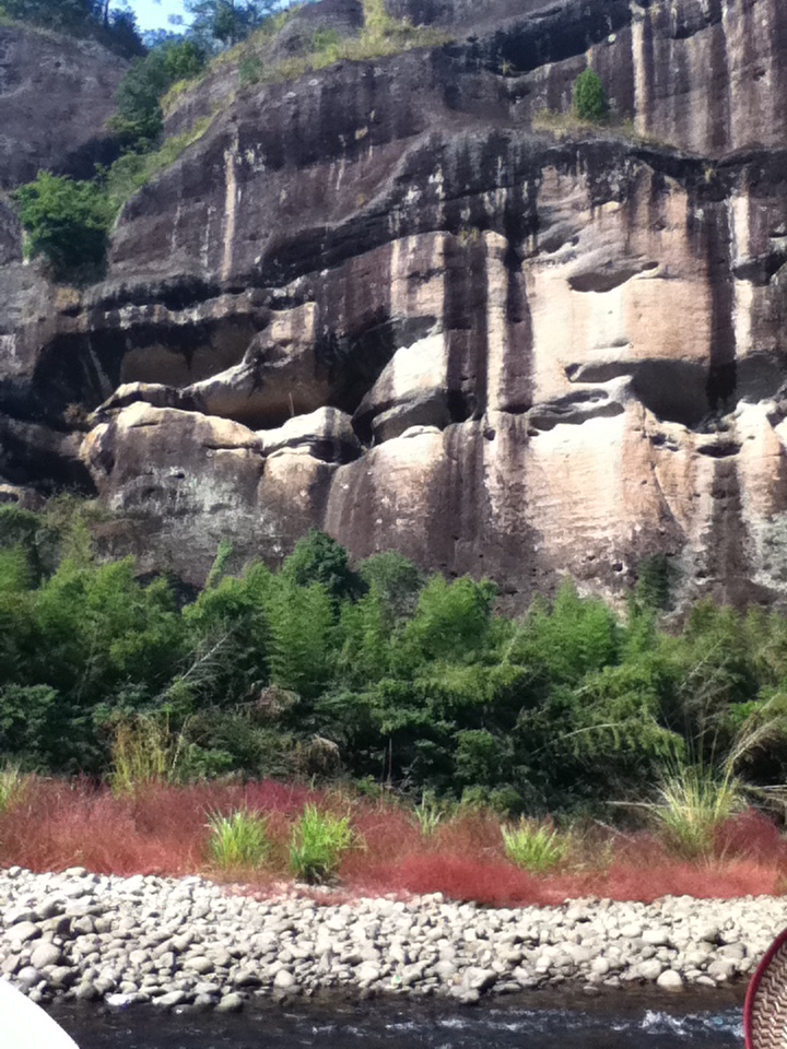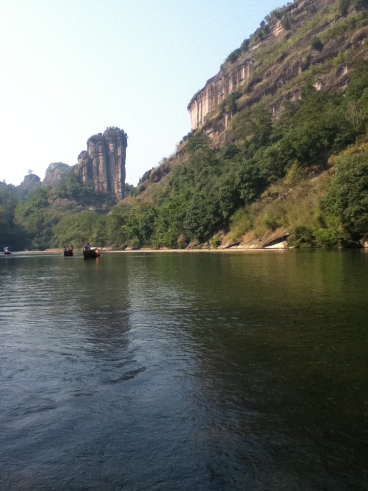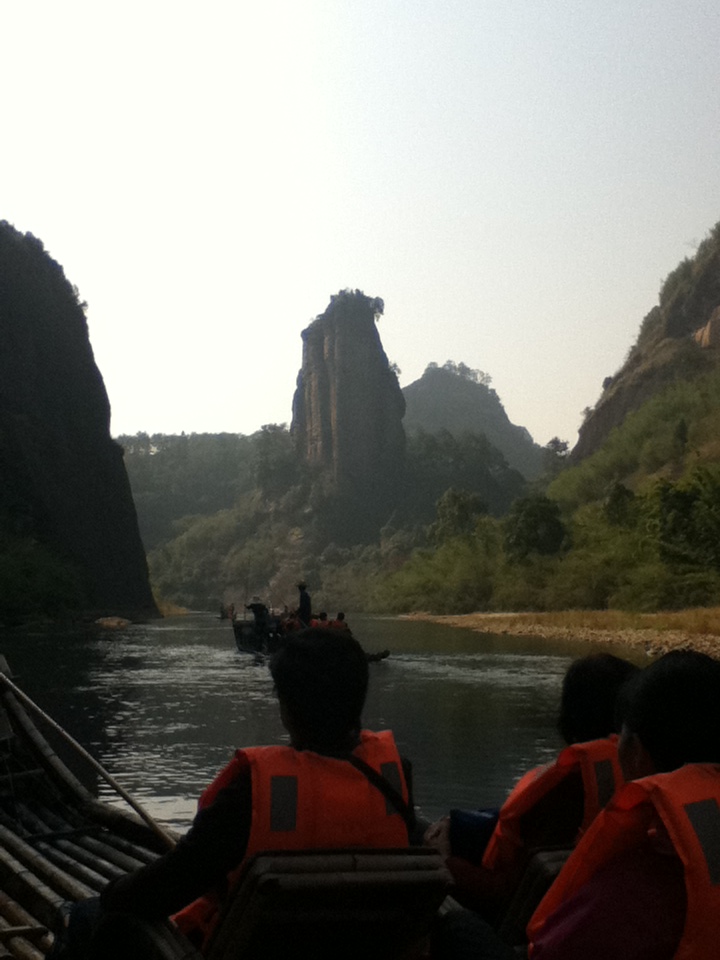 来之前觉得武夷山 景区很大,不知道怎么玩法,其实景点多但大的不多,都比较小而琐碎。枫枫 老板讲后就很清晰了。由于一天的时间去了自然保护区,我们只剩一天时间游景区了,所以我们只挑了大的地方:漂流 ,虎啸岩 一线天 和天游山。这几个地方基本上是必去的,也是老板推荐的。像大红袍 这种地方,据说只是看一块石头和几株茶树,我们就木有去了。景点间的距离比较远,都是通过景区巴士到达的。我们就遇到几个强人,说是一天就把所有的景点都走了一遍,所以大家可以想象,其实很多景点并不大的哦~
