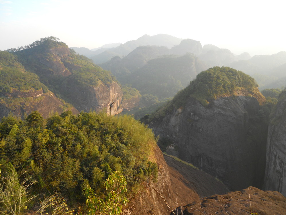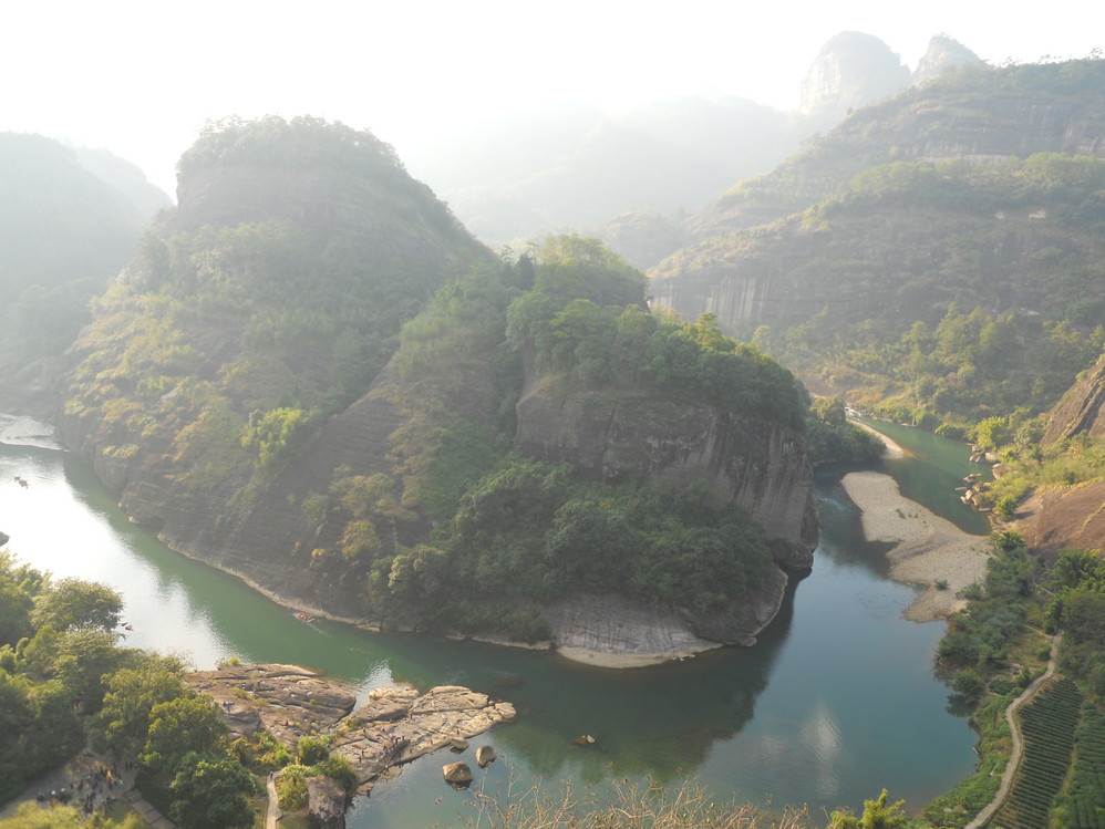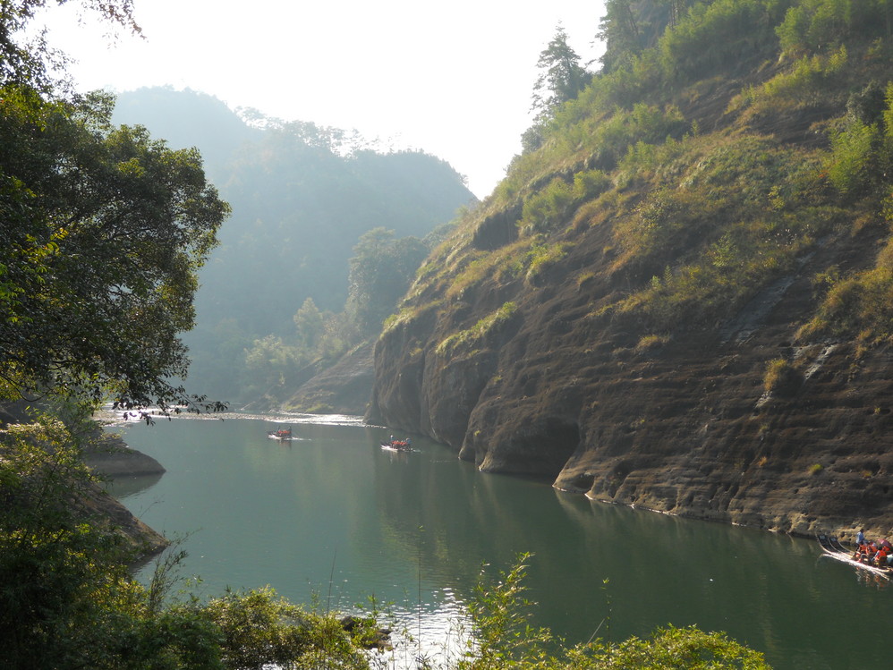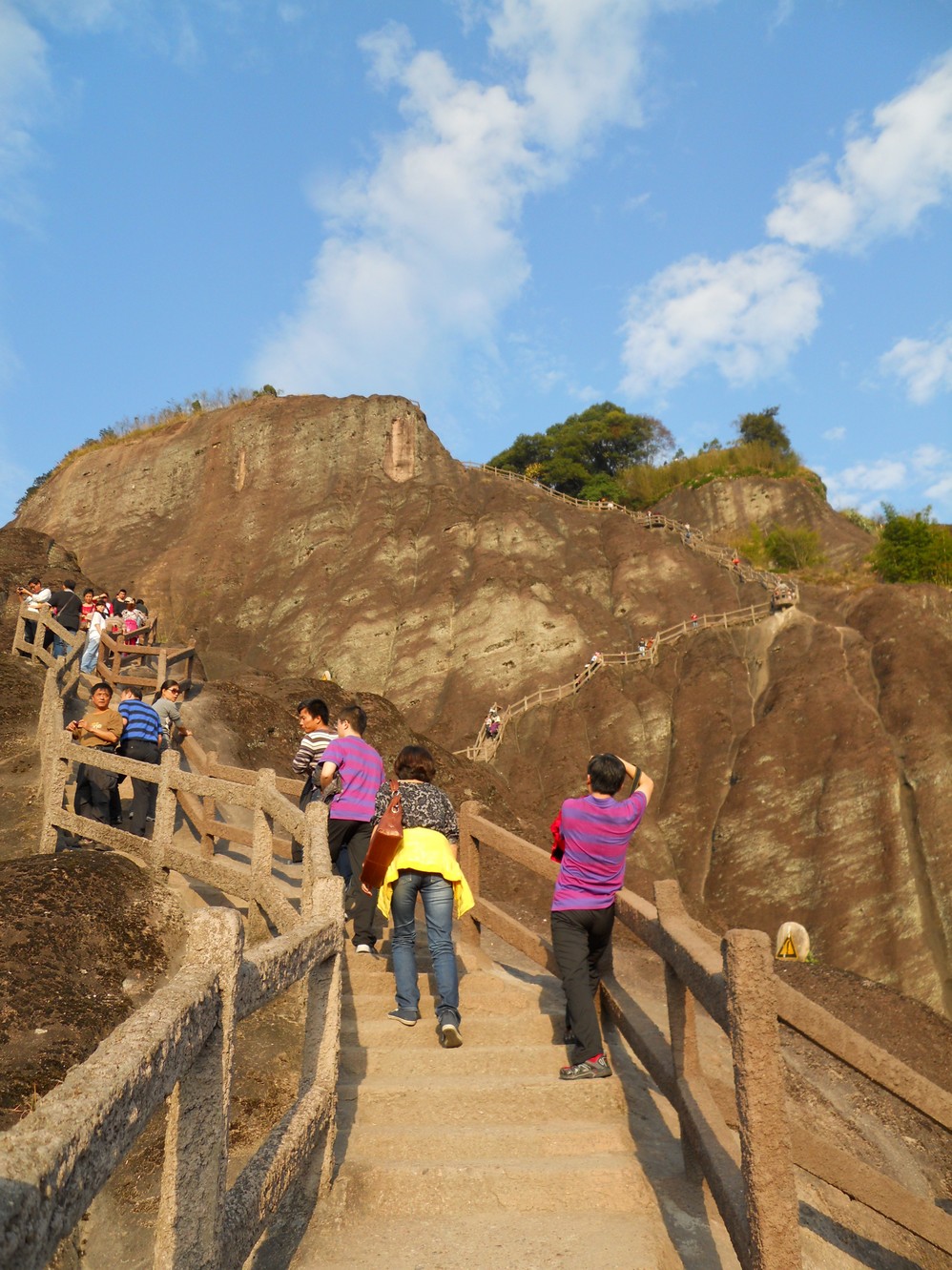 来之前觉得武夷山 景区很大,不知道怎么玩法,其实景点多但大的不多,都比较小而琐碎。枫枫 老板讲后就很清晰了。由于一天的时间去了自然保护区,我们只剩一天时间游景区了,所以我们只挑了大的地方:漂流 ,虎啸岩 一线天 和天游山。这几个地方基本上是必去的,也是老板推荐的。像大红袍 这种地方,据说只是看一块石头和几株茶树,我们就木有去了。景点间的距离比较远,都是通过景区巴士到达的。我们就遇到几个强人,说是一天就把所有的景点都走了一遍,所以大家可以想象,其实很多景点并不大的哦~