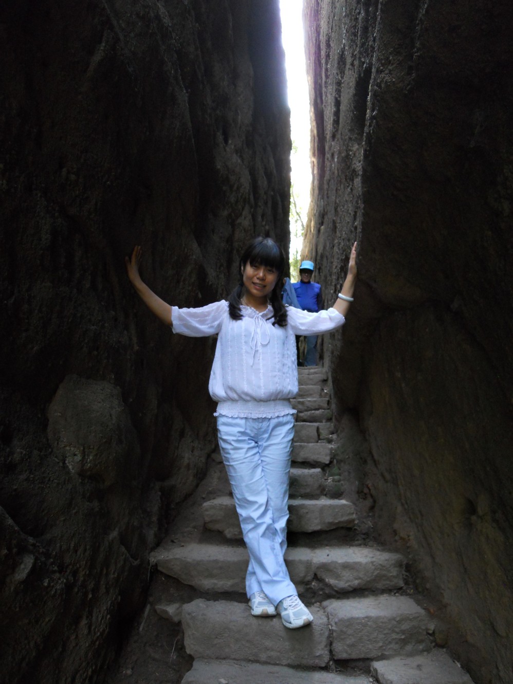 其实这里就是看下一线天 ,很快的。最窄的地方是要侧身过的,而且最窄的地方还有台阶要爬升,所以对胖子来说通过确实有困难哦~