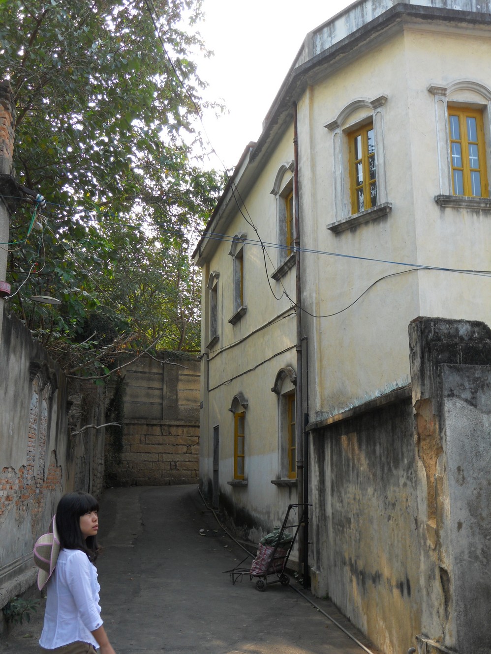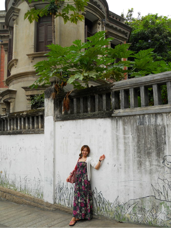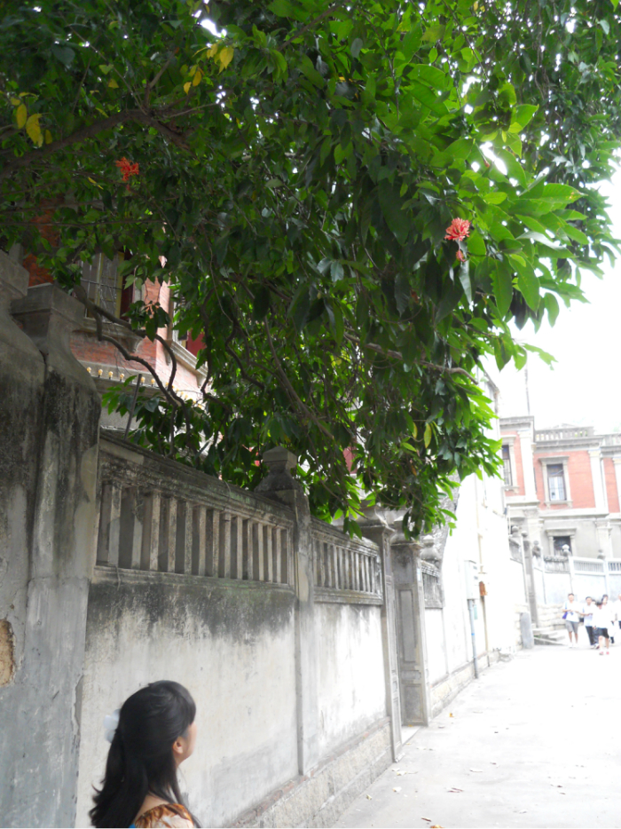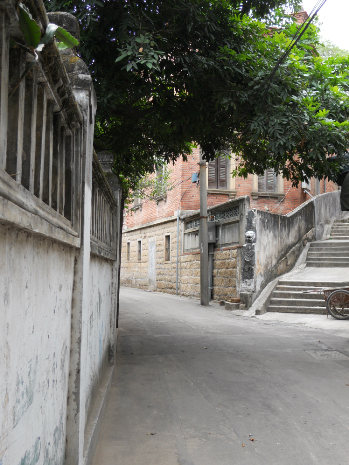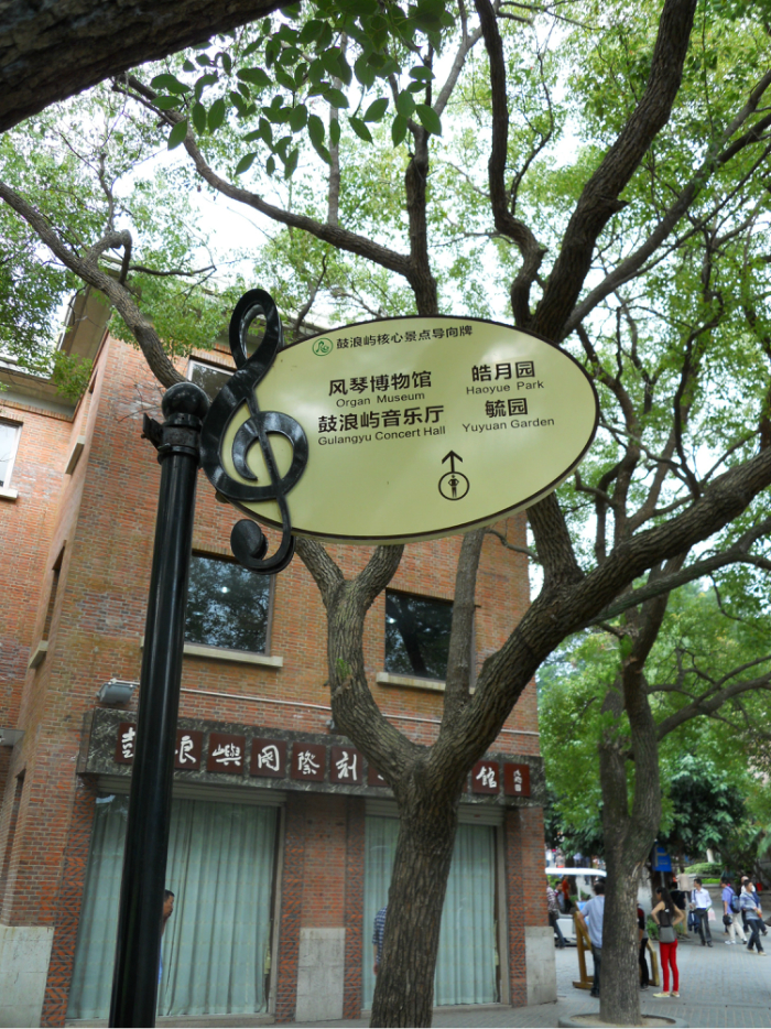这里是不是很宽敞?高大的墙壁和里边郁郁葱葱的树木让我产生无限联想~里边貌似就是大名 鼎鼎的日光 岩了吧,我们木有进去,对很多人挤着去的地方,有点抵抗,况且个人觉得鼓浪屿 重在逛街巷,全景就留给旅行团去看吧~