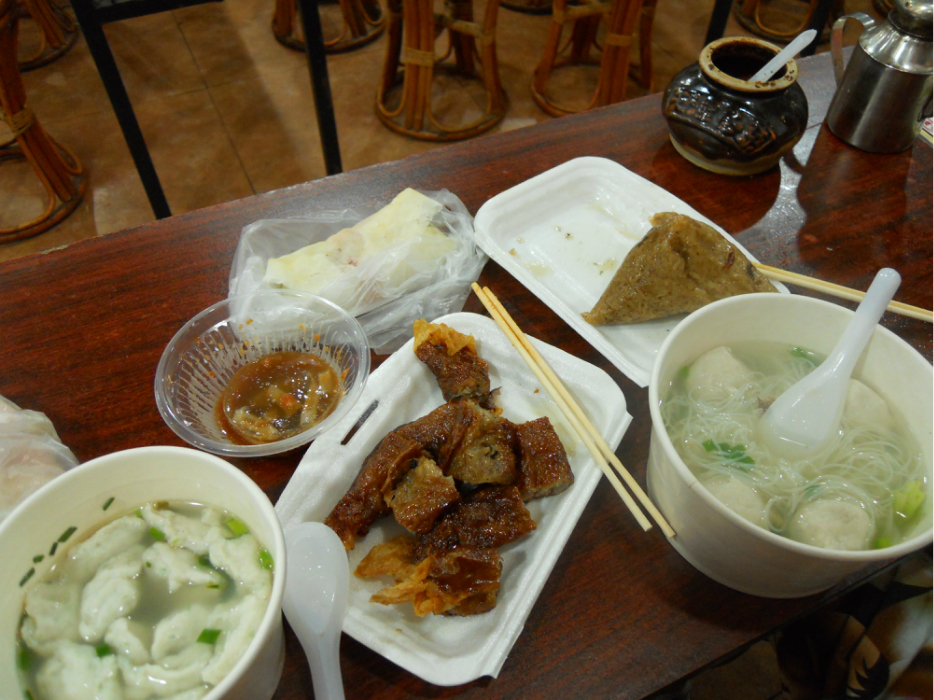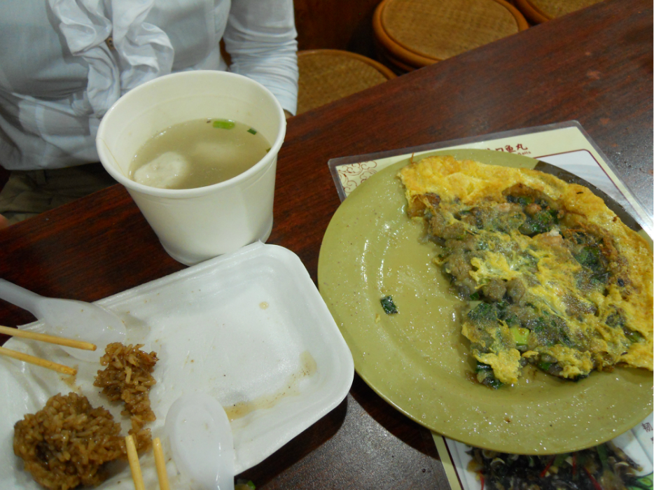 晚餐:鲨鱼丸,肉粽,牡蛎煎,炸五香。尝鲜不错,吃多了会腻,虽然如此,第二天还是来到这里吃了同样的东西~更加悲剧的是,猪姐超级喜欢那个炸五香和肉粽的味道,于是第二天问是不是可以打包生的带走,老板爽快的答应可以真空包装的,于是决定带走。我也跟着意志不坚定了,也要了炸五香。结果炸五香是冰冻的,拿回去不久就开始化水,而我们还有两天才回家,而且酒店没有冰箱,最后臭了扔掉了。肉粽子猪姐拿回去后,据说也有点变质了~嘴馋的人伤不起啊~