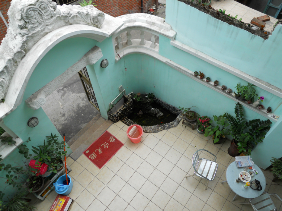 从二楼露台看小院,小而精致,角落还有鱼池 ,猪姐特意拍了,说是回家要在院子里弄一个~