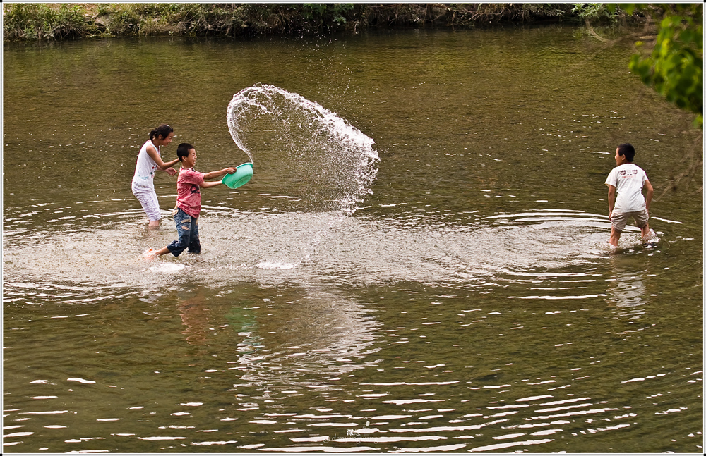 如果不下雨,每个午后都会到水塘边,和几个玩伴扑通扑通鱼跃而入,溅起大朵水花,有时会吓得鱼儿窜出水面来。
