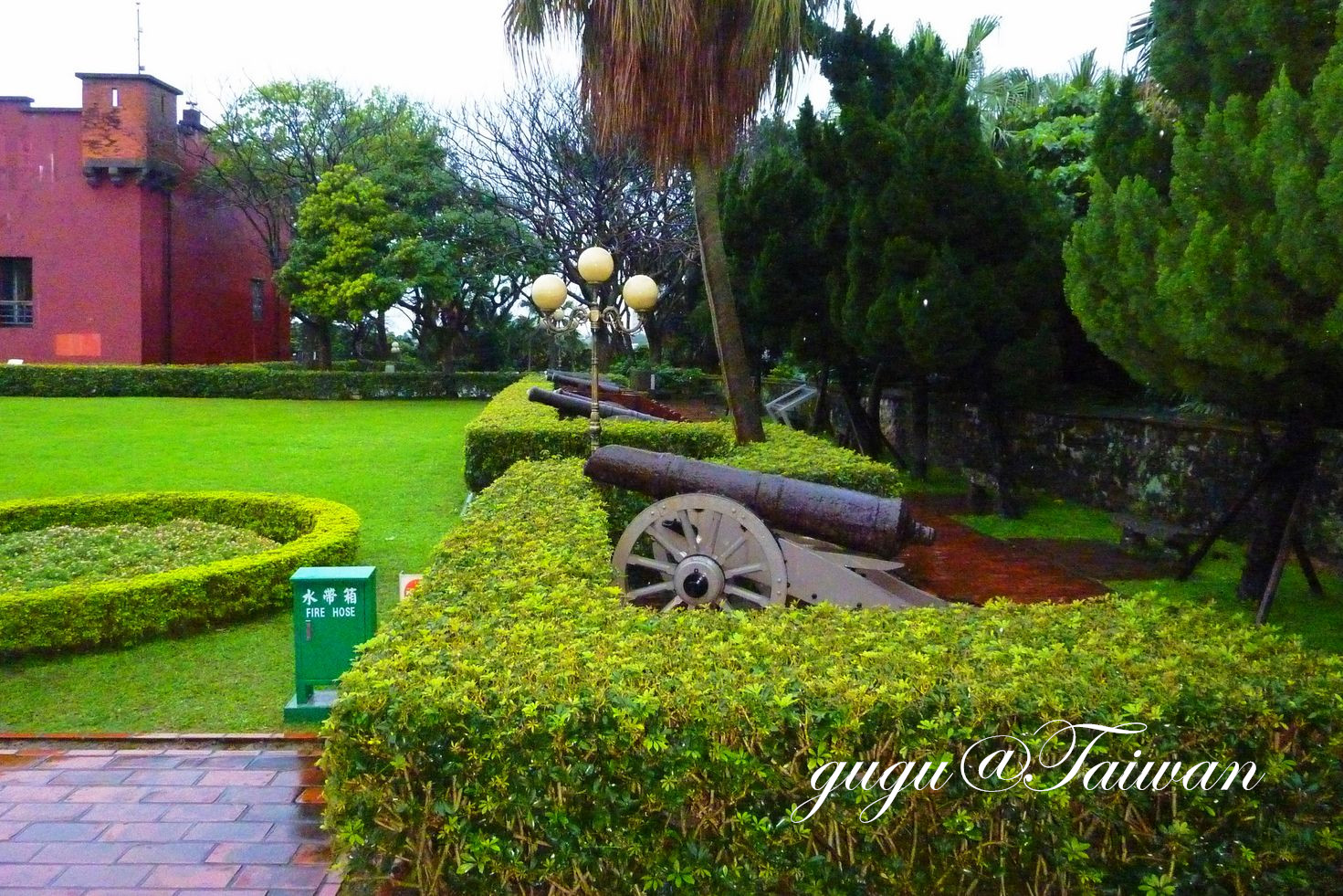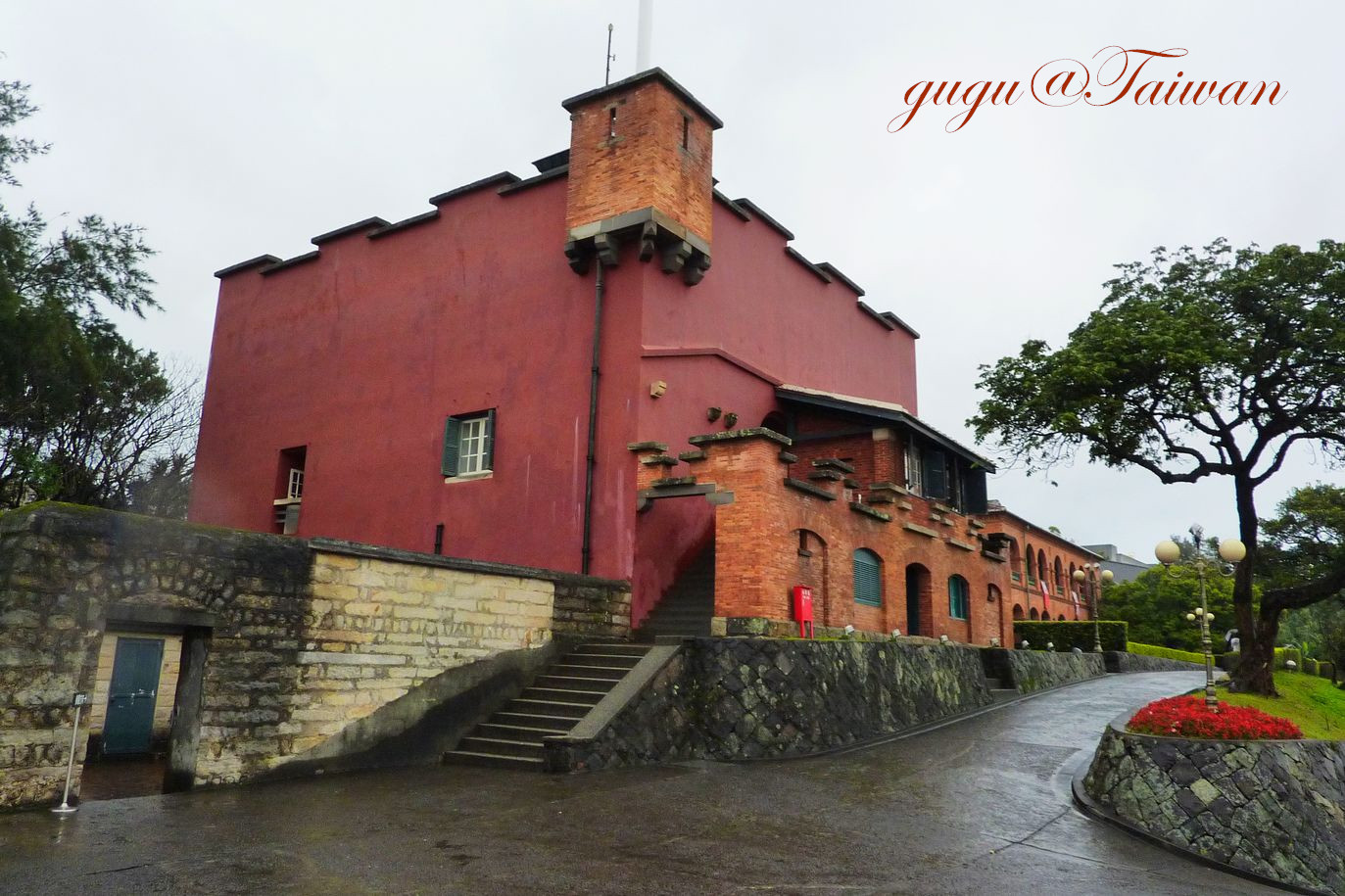 2012年2月25日, 大雨, 由于雨太大, 小雨伞已抵挡不住阳明山上的狂风暴雨,听说一般山上下雨, 山下不一定会下, 所以想下山去淡水碰碰运气, 没想到天下乌鸦一般黑,淡水还是大雨, 既来之, 则安之, 下了地铁, 直奔红毛城,红毛鬼(荷兰人)还真厉害,马来西亚,印度尼西亚都留下他们的踪影。