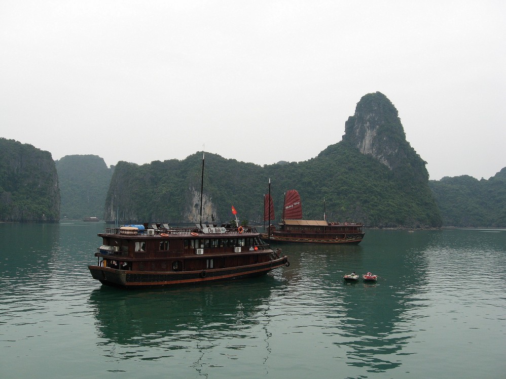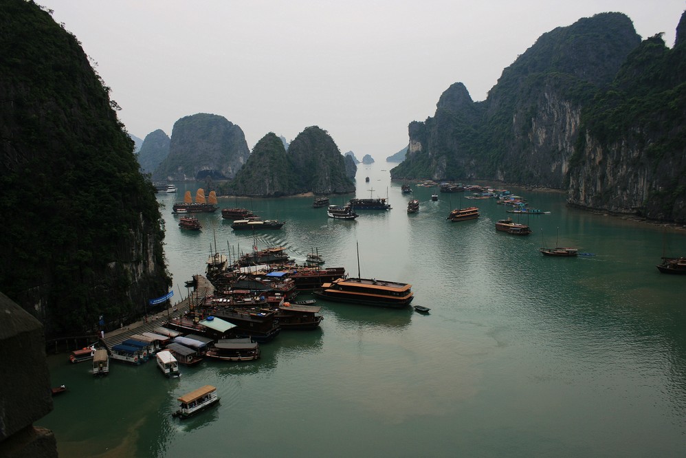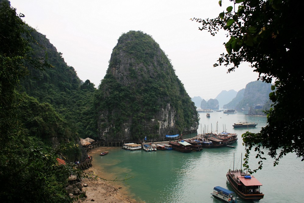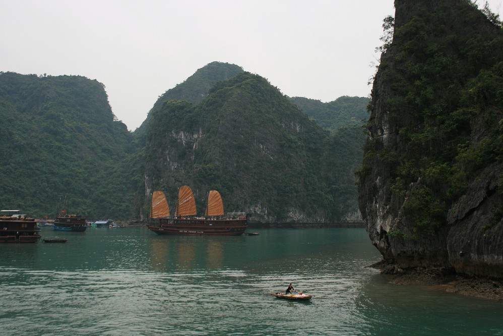 下龙湾被誉为海上桂林,桂林连绵的山坐落在漓江两岸,而下龙湾的山则落在了海里。