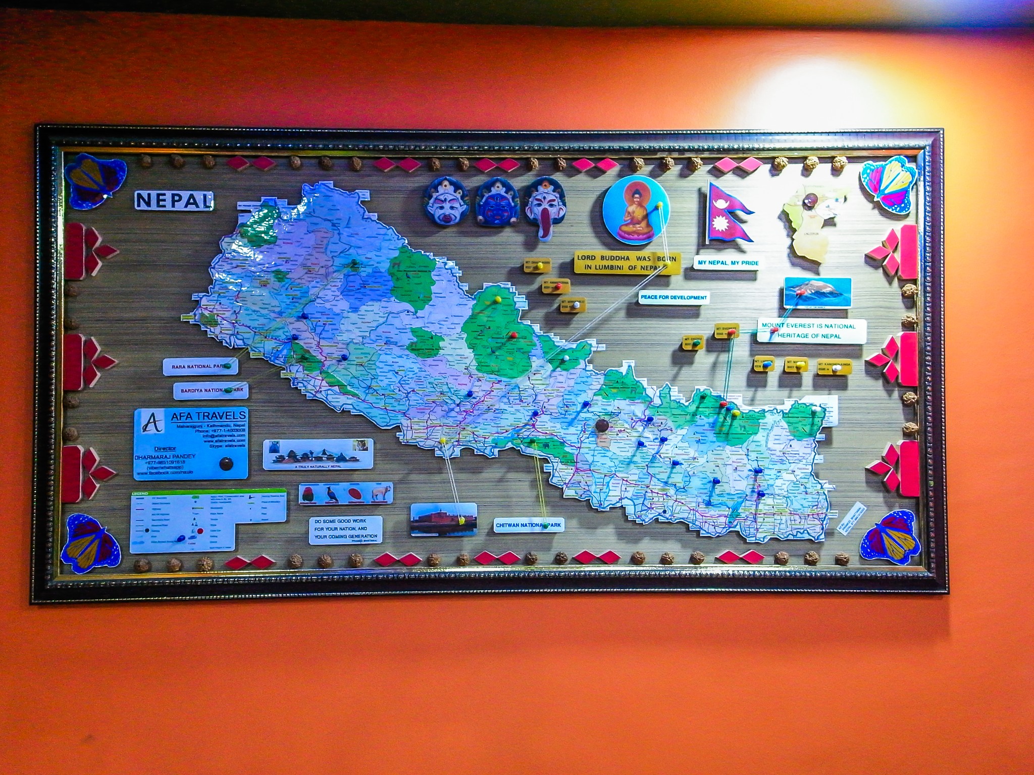 (旅游局里的地图上,面积最大的那片绿色便是我们此行目的地——ACA,又名安娜普尔纳保护区)