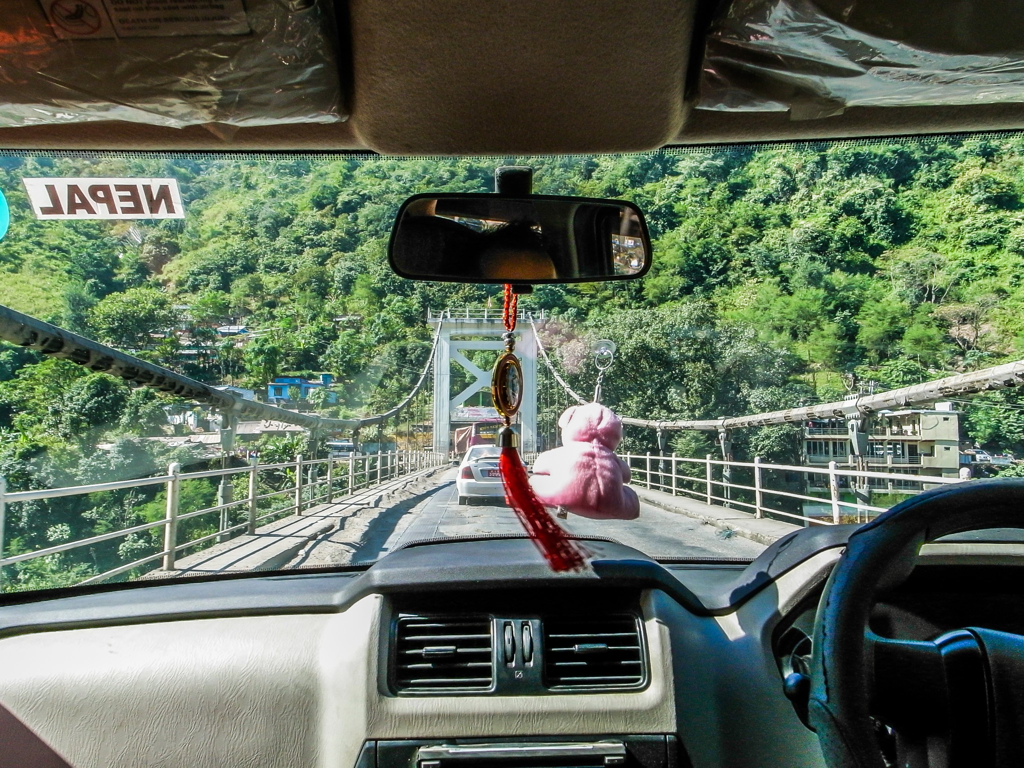 9:00左右,车比约定的时间晚了半小时抵达,于是装包出发。尼泊尔全国的路况都不敢恭维,坑坑洼洼的就没什么好路,坐车颠得慌。出了加都一路向西,不久便进入了峡谷地带。天气格外好,不愧是尼泊尔徒步的黄金季节。在一处河谷我们第一次见到了两座8K级雪山群在远方一字排开——主峰高度排名世界第十的Annapurna(安娜普尔纳)群山,和主峰高度排名世界第八的Manaslu(马纳斯鲁)群山,没有任何的云雾遮挡,这种美景即使在被誉为高山之国的尼泊尔,也算是震撼的。