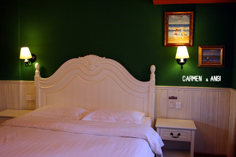 住的是浪花房,房间在四楼,有电梯,浓浓的奶茶情调的房间内饰,很有小岛风情。