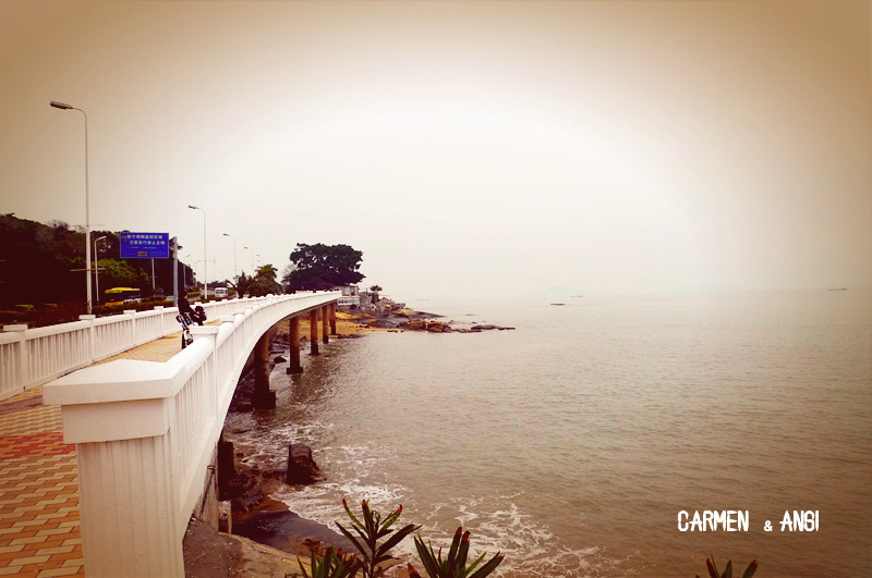 走过绵长的大学路,映入眼帘的就是环岛路了,天有点阴,海风中夹杂一丝冰冷,