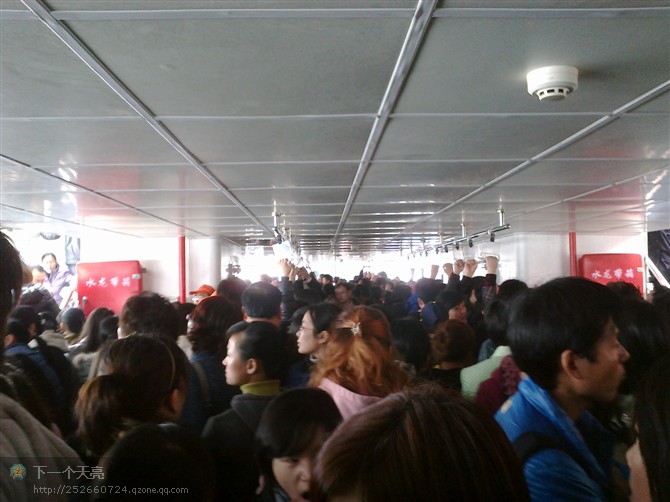去鼓浪屿坐的船,一层是站着的,座位很少,二层有座位,要加收一元钱。后面的人只能多出一元钱到二层。