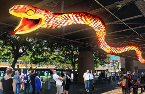 最幽默的是下图。在这些灯被完成前,政府会先公布他们的预览图,就是电脑做出来的。请看这个蛇的计划图与真实图的对比。。。一般大家都觉得买家秀好笑,是因为广告与真实的对比。这个对比也很鲜明与震撼,是搞笑与恐怖的碰撞!