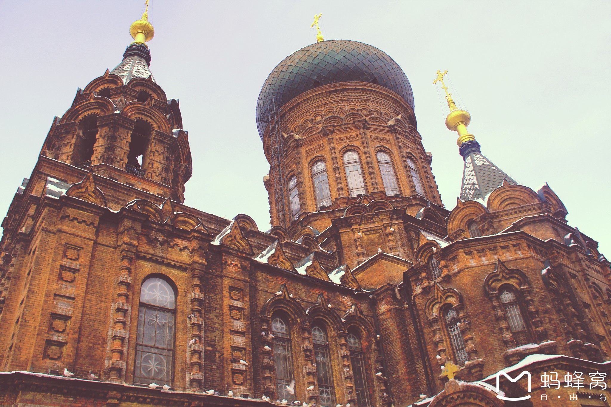 圣·索菲亚教堂,如今作为哈尔滨这座城市的打卡之地,每天来此的游客都络绎不绝。据说这是哈尔滨古老的百年建筑。由于整体的风格仿造于俄式建筑,加之在广场上恰好碰到有几个老外在喂鸽子,这一幕场景可还有点异国的感觉~