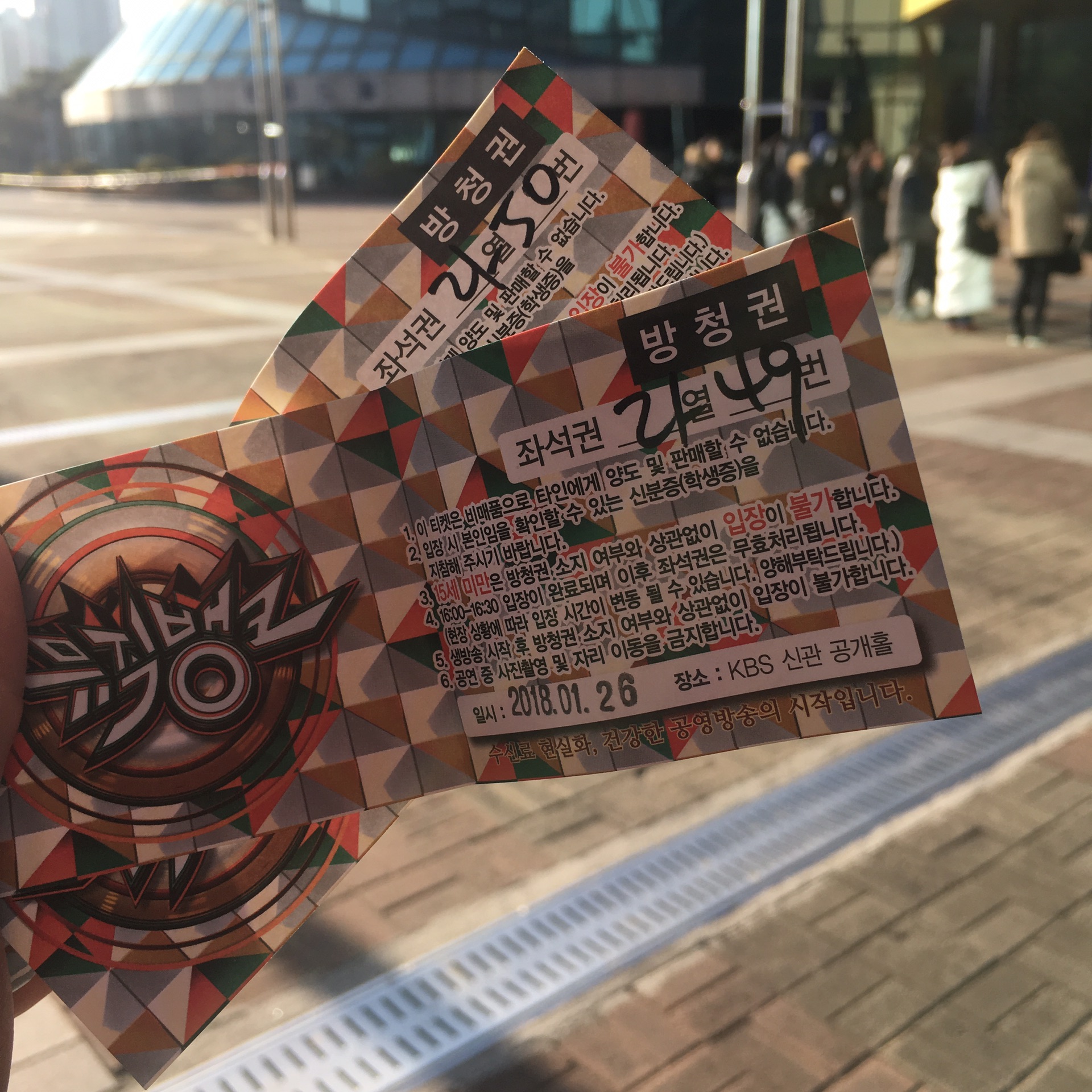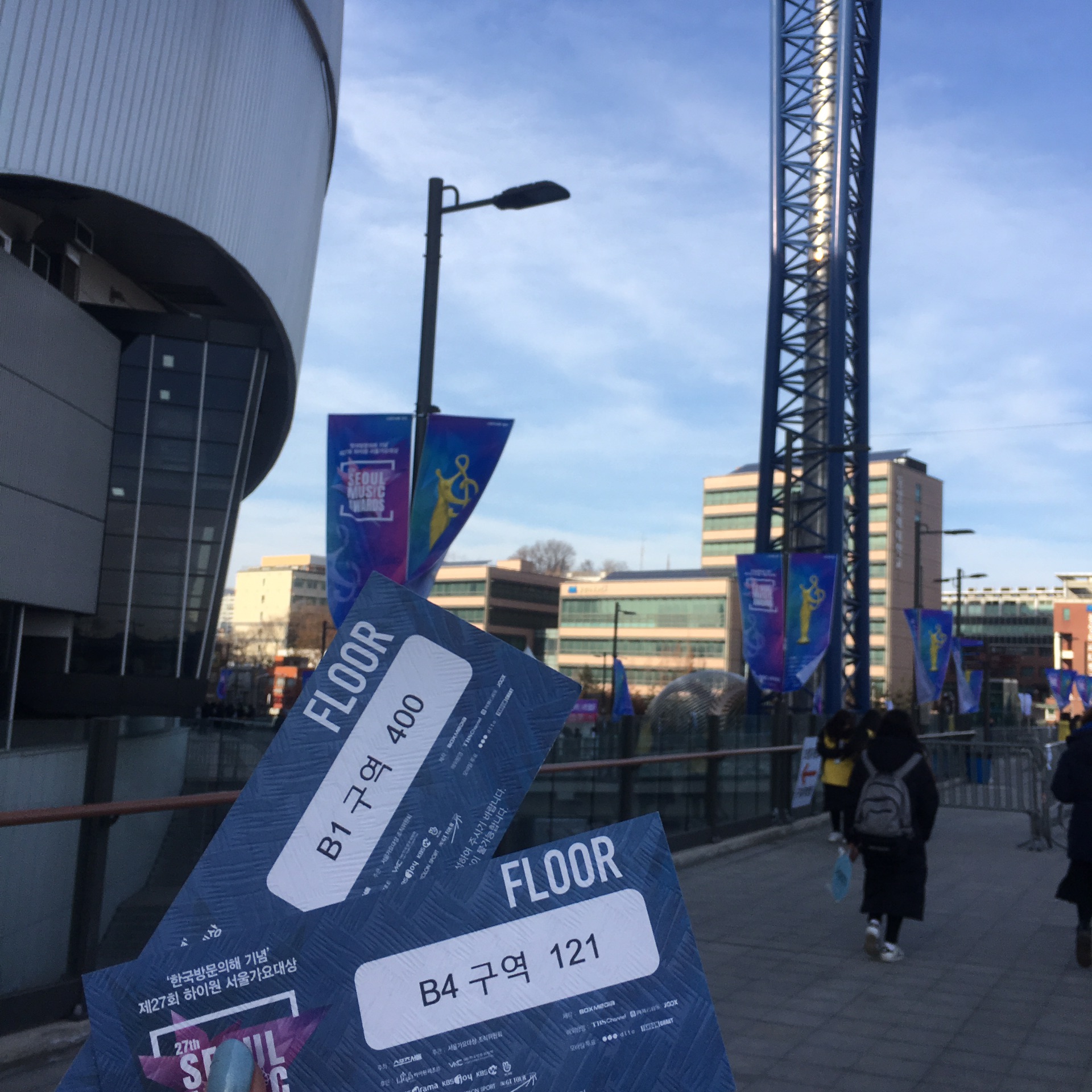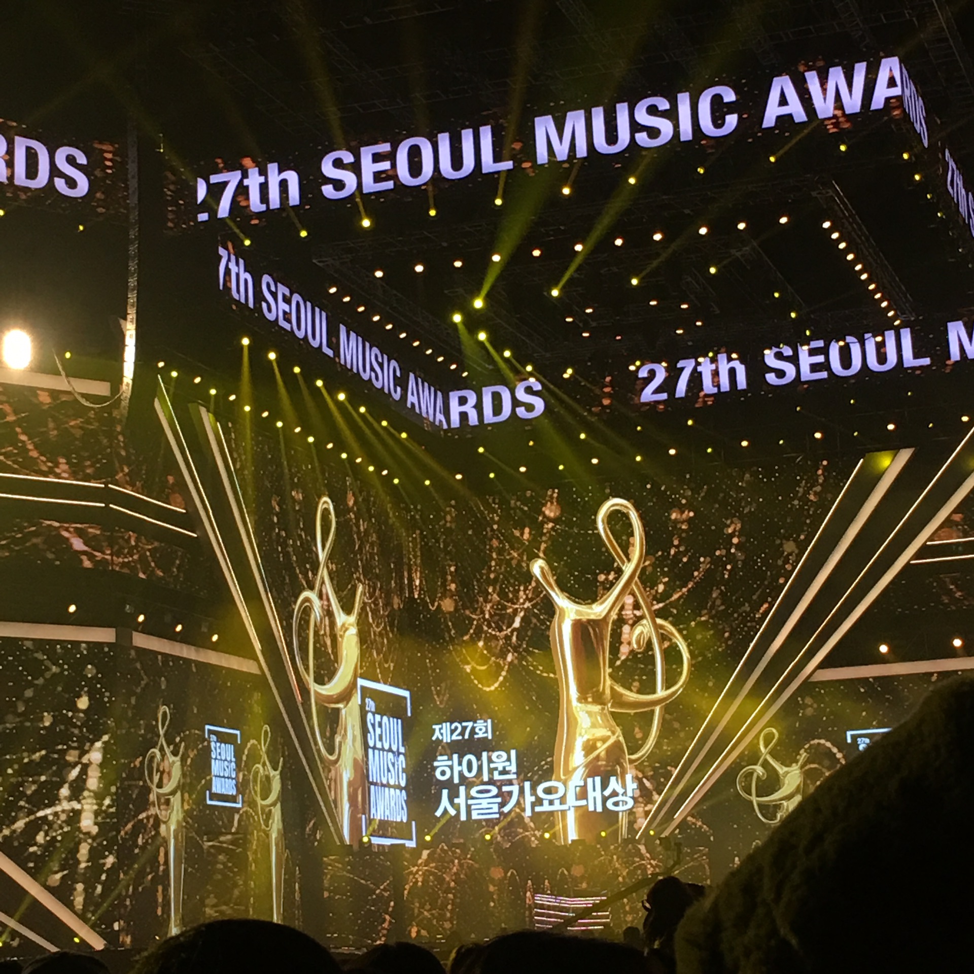 然后是生放 我这次去总共看了四次生放一场首尔歌谣大赏。其实本来是两次的,后来因为错过飞机多留在这里了,所以又买了两张 结果也还是一样的生放 有机会下次我一定要去一次mcountdown
