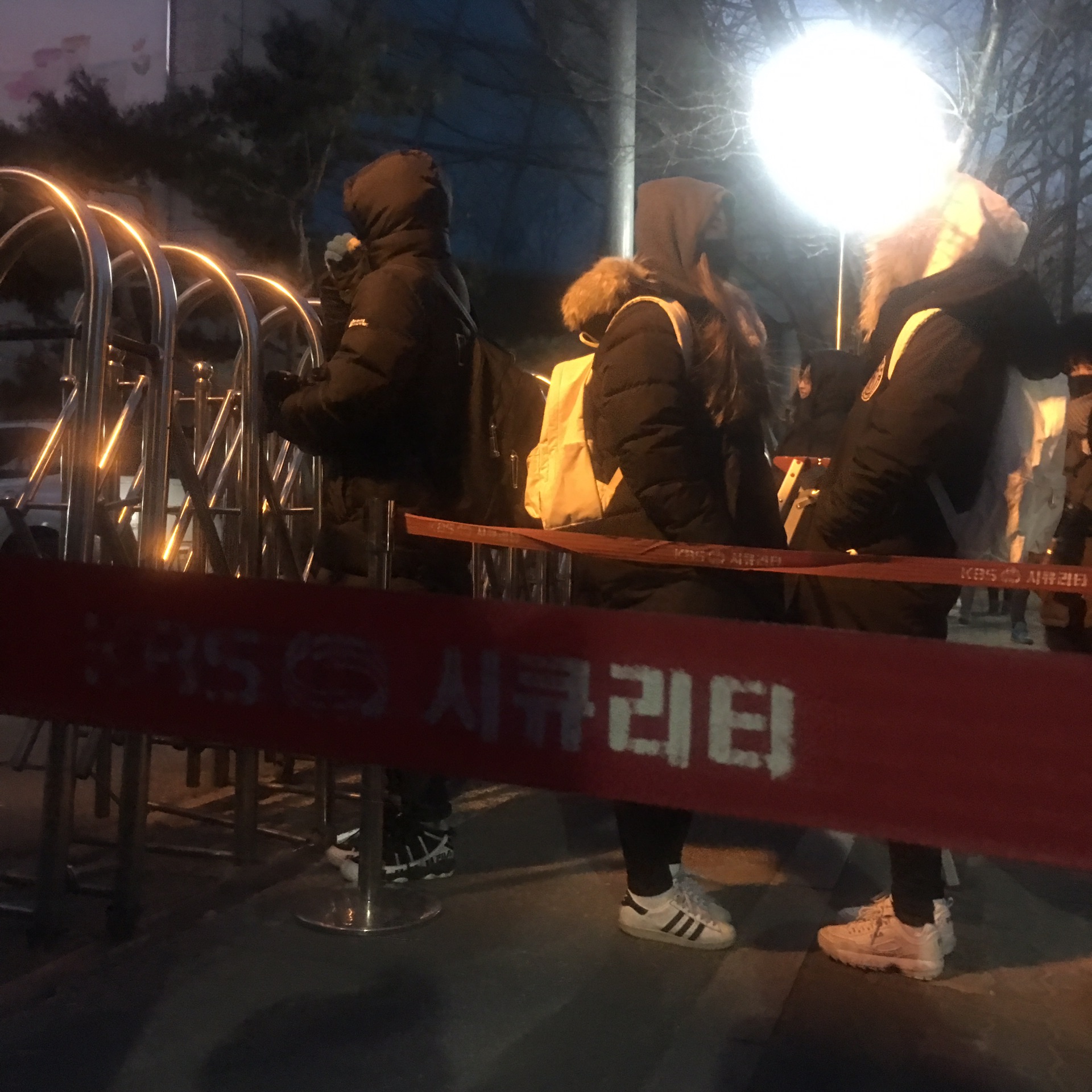 然后sbs看人气歌谣上下班 我去的时候比较晚了没看到上班 ,下班的话 他们顶多是摇下车窗,然后sbs虽然是在室外等 很冷没错但它有在路边设三个大大的 取暖的东西 站在那里稍微会没那么冷。有些爱豆也会走出来坐车,也是看个人了,这个上下班我觉得如果不是站姐需要拍图什么的 去了也没多大意思