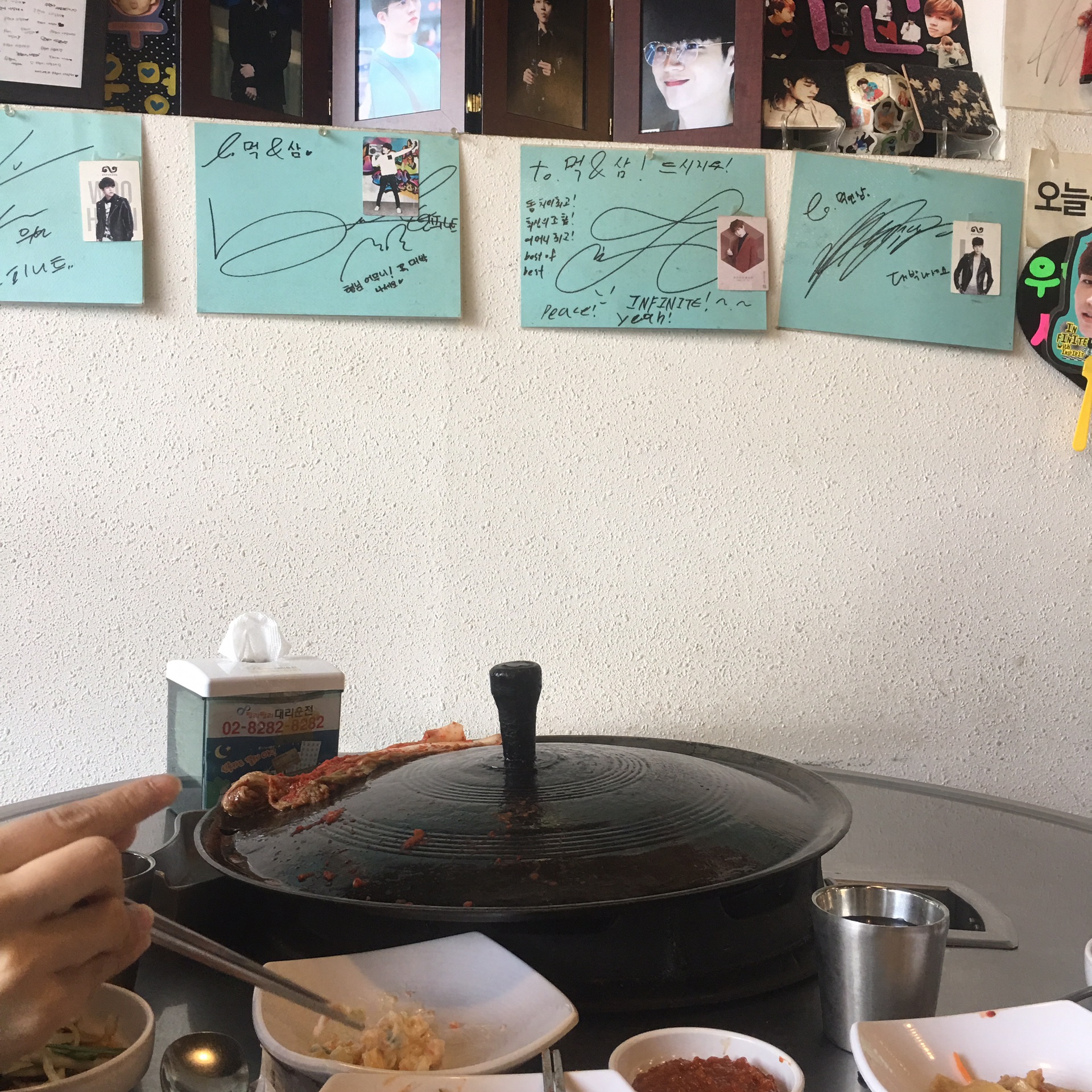 然后还去了阿里郎 这个地方是在瑞草区 方背站 出地铁后坐公交车서초15 大概四站到4방배빌딩 。阿里郎也比较好 是在室内等,而且很少人知道很少人去。当时我去,是陪朋友看jbj,结果jbj就这样走出来了,在场的人都坐着玩手机的玩手机 安静的我怀疑真的是他们吗……我都迟疑了好久,才拿出手机 结果都晚了,才知道去的很多是日本饭 是为了阿里郎的mc去的。我们是十一点到的,一点开始直播,期间会反反复复嘉宾一直走来走去 可以看到很多次,虽然有围栏 但人很少 你叫一下名字 他们都会回复看你的。