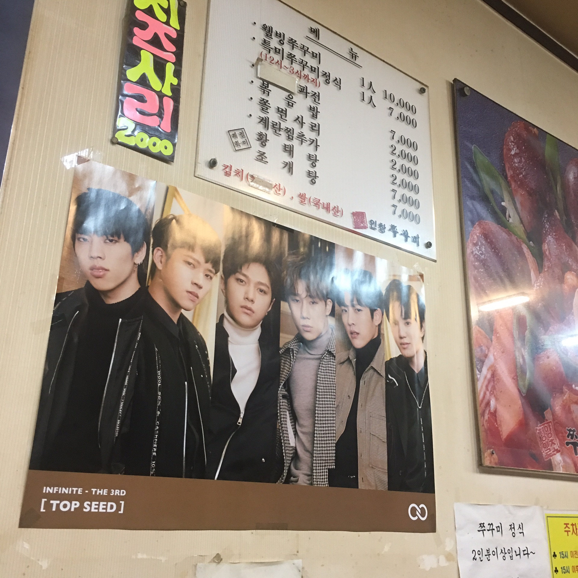 说到吃 本来说着追星 就不在吃的上面花钱 但作为因斯霹雳有三个一定想去的店 就是成烈家的bbq炸鸡店 南木家的烤五花肉店 东雨家的烤小章鱼店啦 其中bbq炸鸡店最好找 一出地铁就能看到 “地铁合井站3号口出 ” 南木 东雨家的我都是靠着韩国地图 这个app找的呐。